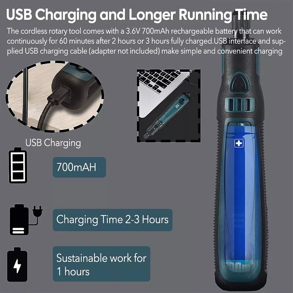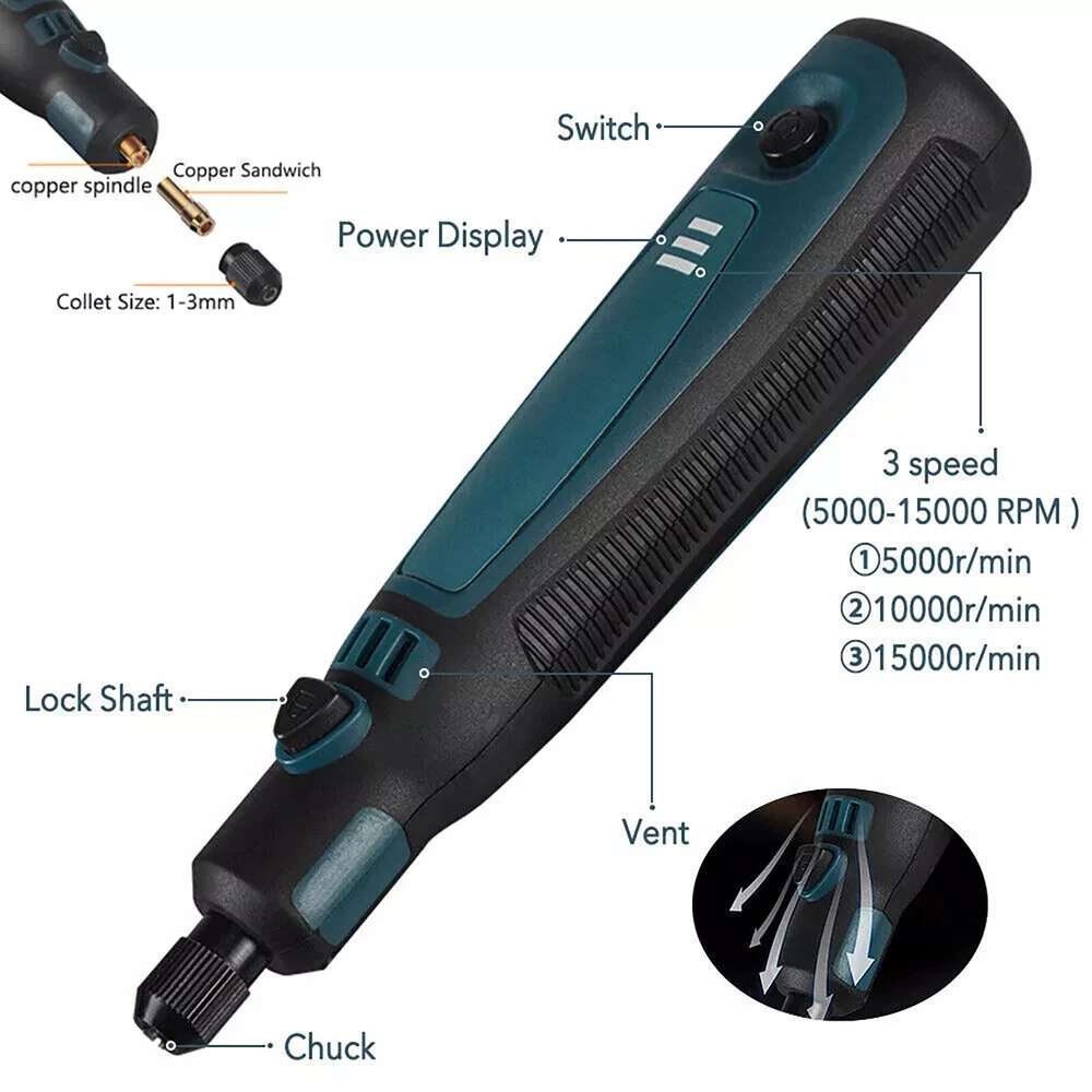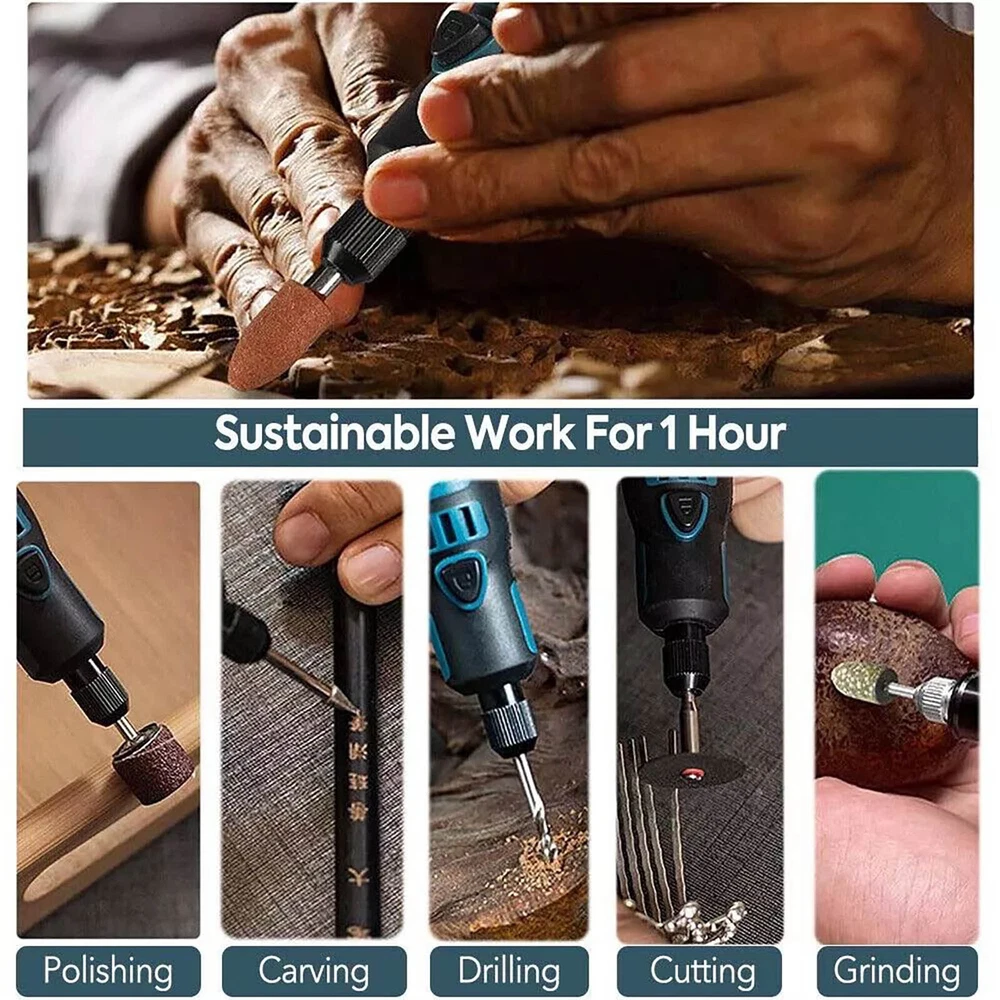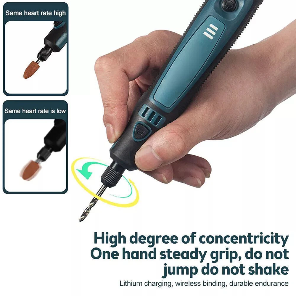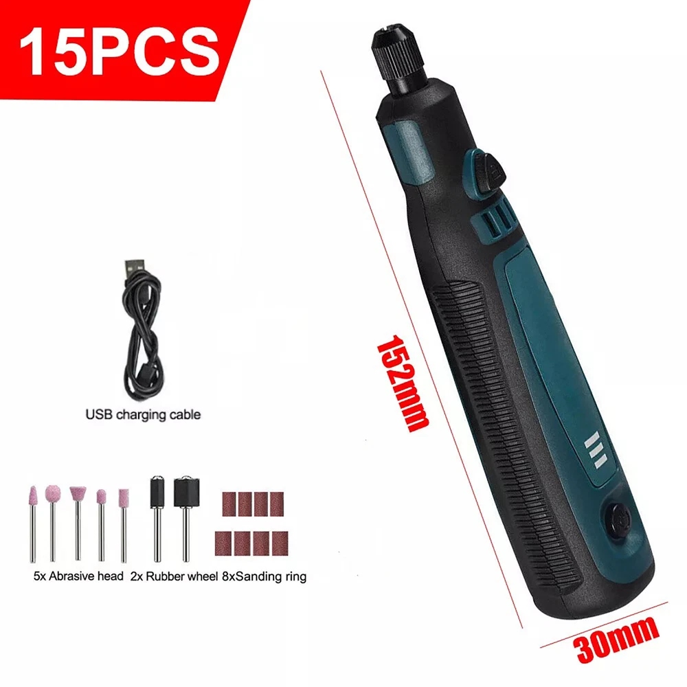 Product Description 15Pcs/Set Cordless Electric Mini Drill Grinder Engraving Pen Rotary Tool Kit Features: Multiple uses to meet different needs: Grinding, polishing, engraving, rust removal, drilling, cutting, etc. Three-speed power adjustment to meet different operating needs. Adjust to different gears according to the number of presses on the power switch. Three-dimensional efficient heat dissipation ensures stability and durability, no overheating. Pen design for easy grip, small body, big power. High-quality batteries, no worries about battery life. Specifications: Color: As pictures show Voltage: 3.6V 3-Speed: 5000r/min ,10000r/min,15000r/min Collet Size: 1-3mm Charging Port: USB Tool Weight: 0.10kg Battery capacity: 700mAh Charging time: 2-3h Package included: 1 × Cordless Rotary Tool 1 × USB Charging Cable 15 × Accessories (8 × Sanding ring, 5 × Abrasive head, 2 × Rubber wheel) If you have any questions, please feel free to contact us via ebay. We usually respond within 24 hours. Payment Shipping Returns Contact Us We accept all verified payments from ebay. Orders will be shipped after receiving cleared payment. Payment due within 7 days after auction ends and for buy it now listings. We ship most of our orders within 24 hours, and may up to 48 hours for. If you want faster shipping way. Please contact us before making payment. Sometimes due to problems with our transportation company system, your shipping information may be delayed to update. We recommend that you try again after 3-4 days. If you still haven't checked the shipping information, you can contact us by ebay message. Always believe we can figure things out with communication, if it comes to return, the pacakge must be intact and the same as you receive. If you have any questions, please feel free to email our service specialists 24 Hours a Day, 7 Days a Week. We will reply you ASAP. Return/refund is accepted within 30 days after the buyer receives the item. NO exchange will be accepted after 30 days from the date when the item is received. Please contact us first before returning your product!!! If you have any questions, our Customer Service staffs welcome you to email us. We strive to answer all questions and resolve any problems as quickly as possible. You can contact us 7*24, we will reply at the first time, and we will surely solve your problems. Note: 1.We try our best to reply to your emails as soon as possible, however, due to high volume of daily incoming emails and time zone difference, we may not be able to reply your emails immediately. Please allow 1 business days for us to response. If you do not receive any reply from us, please check your email ensuring your mailbox has not reached full size. 2.Due to some ISP SPAM filter settings, you may not be able to receive our replies; if you have problems receiving our emails, you may need to use a different email account to contact us. 3.Please give us the opportunity to resolve any problem. We understand the concerns and frustrations you might have, and will try our best to resolve the issues. Please email us before leaving any negative feedback or open any dispute on PayPal. 4.We care about our valued customers, and will always try to help you. So if you have any problems, please e-mail us immediately. Payment We accept all verified payments from ebay. Orders will be shipped after receiving cleared payment. Payment due within 7 days after auction ends and for buy it now listings. Shipping We ship most of our orders within 24 hours, and may up to 48 hours for. If you want faster shipping way. Please contact us before making payment. Sometimes due to problems with our transportation company system, your shipping information may be delayed to update. We recommend that you try again after 3-4 days. If you still haven't checked the shipping information, you can contact us by ebay message. Returns Always believe we can figure things out with communication, if it comes to return, the pacakge must be intact and the same as you receive. If you have any questions, please feel free to email our service specialists 24 Hours a Day, 7 Days a Week. We will reply you ASAP. Return/refund is accepted within 30 days after the buyer receives the item. NO exchange will be accepted after 30 days from the date when the item is received. Please contact us first before returning your product!!! Contact Us If you have any questions, our Customer Service staffs welcome you to email us. We strive to answer all questions and resolve any problems as quickly as possible. You can contact us 7*24, we will reply at the first time, and we will surely solve your problems. Note: 1.We try our best to reply to your emails as soon as possible, however, due to high volume of daily incoming emails and time zone difference, we may not be able to reply your emails immediately. Please allow 1 business days for us to response. If you do not receive any reply from us, please check your email ensuring your mailbox has not reached full size. 2.Due to some ISP SPAM filter settings, you may not be able to receive our replies; if you have problems receiving our emails, you may need to use a different email account to contact us. 3.Please give us the opportunity to resolve any problem. We understand the concerns and frustrations you might have, and will try our best to resolve the issues. Please email us before leaving any negative feedback or open any dispute on PayPal. 4.We care about our valued customers, and will always try to help you. So if you have any problems, please e-mail us immediately. powered by