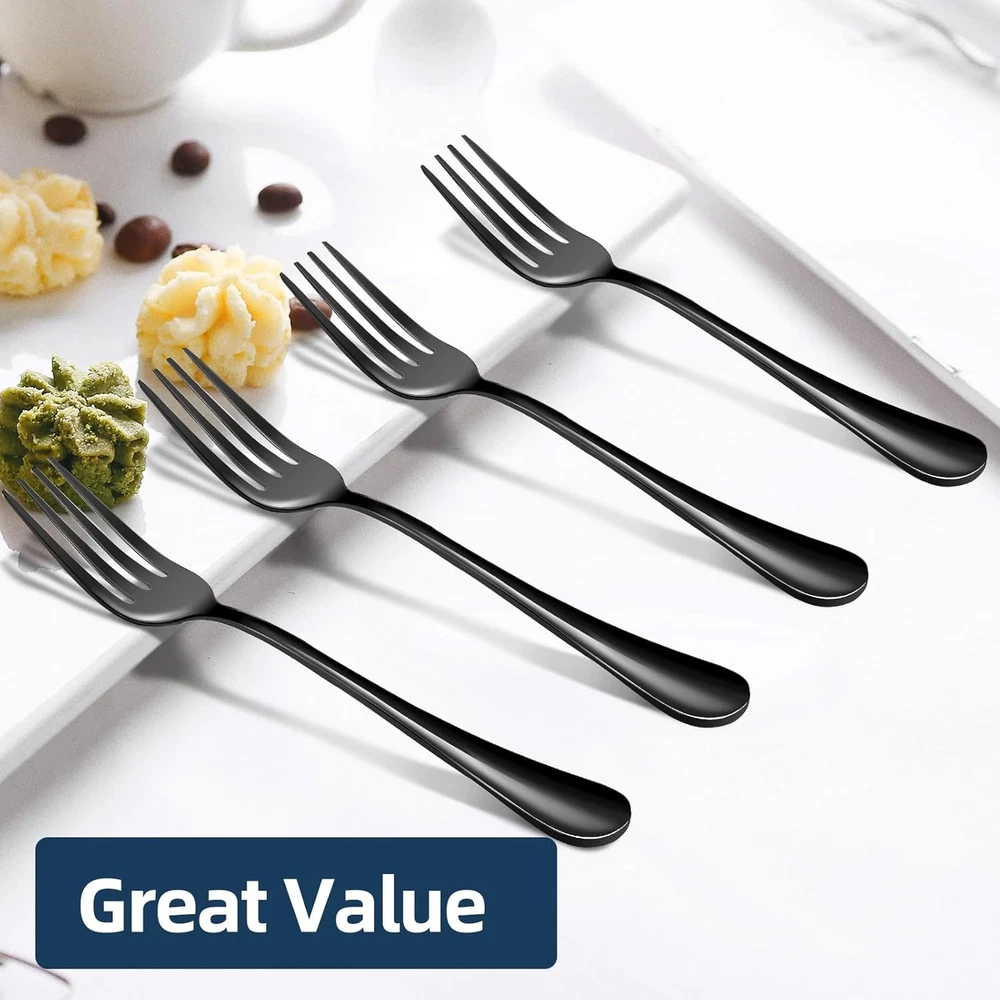Store New Arrivals Add to Favorite View Feedback Contact 16 Piece Dinner Forks, 8 Inch, Top Food Grade Extra-Fine Stainless Steel Silverware Forks(Black) Description Item model number dinner forks Color Black Material Stainless Steel Is Dishwasher Safe Yes Item Weight 1.34 pounds Handle Material Stainless Steel Package Dimensions 8.9 x 2.87 x 1.73 inches Size 16Forks(Black) [16Pcs Forks Set, Sufficient Quantity]--Make a worthy investment which not only cost effective, but a useful tableware set you will appreciate.Our stainless steel fork set contains 16 forks, which can perfectly replace the forks lost in daily life.It is a pleasant suprise as cost isn't high.They are also suitable for parties, festivals and formal events, such as weddings, celebrations, family dinners and more! They are a great choice for restaurants, picnics and BBQ. [Food Grade Stainless Steel, Safe and Anti Rust]-- ITITT forks are made of top food grade 18/8 stainless steel with mirror finish, providing you with a durable fork set that will last you many years. Their edges have been polished many times and are smooth that they won't scratch your mouth. They are resistant to rust, corrosion and dishwasher safe. It's a great alternative to the plastic forks. [Ergonomic Design, Comfortable and Balanced Feel in Hand]--the curvature of fork handles is designed according to the posture of the hand, and the appropriate weight and perfect balance are added to ensure maximum comfort during use that avoids you feel tired. Moreover, the smooth edges ensure safety and no scratches.Most importantly, they're dishwasher safe. [Multi-function and Impressive Gift]-- Choosing a good set of cutlery is not only for everyday use, but also for upcoming holiday parties, gatherings, weddings, camping and entertainment, or for buffets and banquets at restaurants or hotels. It's also a wonderful choice as a gift. [100% Satisfaction and Risk-free Purchase]-- Stainless steel forks are durable and reusable, more environmentally friendly than plastic forks. Now "add-to-cart" and order, you will get them in a short time. Any question, please by email and we will service you immediately. Product Description ITITT, your friends at the table. Now order, you will get them soon. Quantity: 16 Pieces dinner forks Choosing these exquisite quality cutlery for dining experience that combines remarkable craftsmanship, versatile usage, and enduring elegance. Make every meal a truly special occasion, and create cherished memories with your loved ones. Length: 8 inch Color: Black Polishing process: Mirror Polish Quantity: 16 Pieces Material: 18/10 stainless steel Clean: Dishwasher Safe Mirror Polish: The fork’s sharp, pointed tines make it ideal for digging into a variety of sweet treats, such as cake, pie, and ice cream. Its compact size also makes it perfect for serving hors d’oeuvres, fruits, and other small bites. Whether you’re entertaining guests or treating yourself to a decadent dessert, our fork is the perfect companion for any delectable treat. Round edges: Our elegant and comfortable round handle fork! This fork is perfect for enjoying a delightful afternoon tea time with your friends and family. The round edges of its handle provides a comfortable grip, making it easy and effortless to hold while enjoying your favorite treats. The ergonomic handle is designed with both comfort and practicality in mind, ensuring a secure and comfortable grip during use. Occasion: Modern stainless steel dinner fork, perfect for any occasion - whether you’re hosting a party, barbecuing with friends, or simply enjoying a delicious steak dinner at home. Crafted from durable stainless steel, our fork boasts a sleek and contemporary design that will complement any table setting and add a touch of elegance to your meal. ABOUT US We offer the best prices around on high quality products. Our E-store includes media such as books, movies, music and games while offering electronics, toys, sporting apparel, clothing, tools, general home, garden items and more. SHIPPING We are always working hard to ensure your package arrives as soon as possible. Please understand that some factors like weather, high postal traffic, and the performance of shipping companies are outside of our control. We offer free shipping to the lower 48 states and ship within 2 business days of payment, usually sooner. We do not accept P.O. Boxes. Please provide a physical address. For shipping outside of the continental USA, we only use eBay's Global Shipping Program.The item is shipped to KY and then sent to the rest of the world. International customers are responsible for all duties and taxes. Continue to check out in order to calculate costs for shipping the item to your country. Messages regarding eBay's Global Shipping Program MUST be directed at eBay EXCLUSIVELY. RETURNS We offer a 30-Day Return Policy on items which you are not completely satisfied with. You have the option for a full-refund or an exchange of the item. No returns are available on items shipped outside of the USA. PAYMENT We accept PayPal. CONTACT US This page content is yet to come Please ad us to your favorite seller and visit again later Thank You CUSTOMER SATISFACTION We try our very best to make sure every customer is completely satisfied. If there's a problem, message us! We're happy to help. WE ACCEPT Copyright © 2021 AutoDS. | All Rights Reserved
