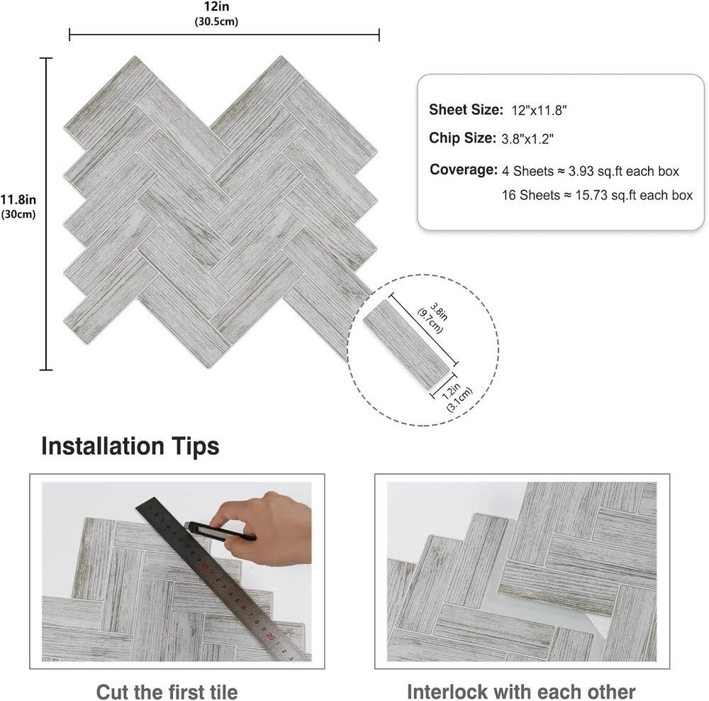 Store New Arrivals Add to Favorite View Feedback Contact 16 Sheets Wood Look Herringbone Peel and Stick Tiles Backsplash for Kitchen 12"X12" Stick on Backsplash Tile Stickers Self Adhesive Bathroom Shower Tiles Waterproof Wall Tiles for Fireplace Description Item model number C8-WEFT-050-YT0013 Style Rustic Pattern Chevron Batteries Included? No Usage Home Décor Unit Count 16.0 Square Feet Batteries Required? No Finish Glossy Material Polyurethane (PU), Polyethylene Terephthalate Installation Type Peel and Stick Coverage 15.73 square feet per box Edge Style Square Edge Form Factor Square Item Thickness 0.05 Inches Water Resistance Level Waterproof Item Weight 2.86 pounds Special Features Heat-resistant, Waterproof, Durable, Oil-proof Special Feature Heat-resistant, Waterproof, Durable, Oil-proof Part Number C8-WEFT-050 Color Light Wood Grain Finish Type Glossy Shape Square Recommended Uses For Product Kitchen Backsplash, Bathroom Shower Walls, Behind the Stove Size 12"x11.8" (16-Sheets) Product Dimensions 12"L x 11.8"W Number Of Pieces 16 ▶ Herringbone Tiles ◀ Peel and stick backsplash for kitchen, each tile is 12"x11.8"x0.05" and covers 0.983 sq.ft. 16 sheets per box, cover a total area of approximately 15.73 square feet. Light wood look herringbone tiles, distressed and retro, glossy finish, realistic tile effect with 3D texture, but light weight ▶ High-quality Materials ◀ Peel and stick tile stickers, made of eco-friendly PU glue and PET backing paper, safe, durable, strong adhesion, long-lasting, no yellowing or cracking over time, impact-resistant, waterproof, oil-proof, easy to clean stains, moisture-proof, heat-resistant, withstands temperatures from -30°C to 80°C, play a protective role ▶ Easy Do It Yourself ◀ Stick on backsplash for kitchen, self adhesive, easily peel and stick, easy to cut, seamless, no overlap, no grout, no glue, no special tools, no experience, easy to install, beginner friendly. Easy to adjust, flexible, can be bent to corner, removable and without leaving sticky residue, renter friendly backsplash ▶ Wide Use ◀ Back splash stick on wall tiles, can be applied vertically or horizontally to the smooth and flat surfaces. Peel and stick backsplash for kitchen, peel and stick tile for bathroom, peel and stick shower tile waterproof, stick on backsplash for behind stove wall, tile stickers peel and stick for laundry room, peel and stick wall tile for fireplace, RV, stairs, vanity wall, washbasin ▶ Key Tips ◀ ⭕Please consider that there will be about 1-5% cutting loss in each installation project. ⭕Due to the difference in device screens, the actual color may vary slightly from the picture, we recommend that you order 4 sample tiles to check and make further decision. ⭕Please read the instructions on the box carefully before installation. Product Description Mutiple Choices Add to Cart Add to Cart Add to Cart Add to Cart Add to Cart Add to Cart Customer Reviews 3.4 out of 5 stars 27 4.0 out of 5 stars 26 4.0 out of 5 stars 26 4.0 out of 5 stars 6 4.0 out of 5 stars 15 4.0 out of 5 stars 15 3.5 out of 5 stars 4 Price $48.99 $ 48 . 99 — $16.99 $ 16 . 99 $16.99 $ 16 . 99 $48.99 $ 48 . 99 $48.99 $ 48 . 99 $48.99 $ 48 . 99 Size 12"x11.8" 12"x12" 12"x12" 12"x11.8" 12"x12" 12"x12" 12"x12" Sheet 16 Sheets 4 Sheets 4 Sheets 4 Sheets 16 Sheets 16 Sheets 16 Sheets Coverage 15.73 sq.ft each box 4 sq.ft each box 4 sq.ft each box 3.93 sq.ft each box 16 sq.ft each box 16 sq.ft each box 16 sq.ft each box Material PU glue and PET backing paper PU glue and PET backing paper PU glue and PET backing paper PU glue and PET backing paper PU glue and PET backing paper PU glue and PET backing paper PU glue and PET backing paper Waterproof ✔ ✔ ✔ ✔ ✔ ✔ ✔ Easy to Clean ✔ ✔ ✔ ✔ ✔ ✔ ✔ Heat Resistant ✔ ✔ ✔ ✔ ✔ ✔ ✔ Easy to Install ✔ ✔ ✔ ✔ ✔ ✔ ✔ Removable ✔ ✔ ✔ ✔ ✔ ✔ ✔ ABOUT US We offer the best prices around on high quality products. Our E-store includes media such as books, movies, music and games while offering electronics, toys, sporting apparel, clothing, tools, general home, garden items and more. SHIPPING We are always working hard to ensure your package arrives as soon as possible. Please understand that some factors like weather, high postal traffic, and the performance of shipping companies are outside of our control. We offer free shipping to the lower 48 states and ship within 2 business days of payment, usually sooner. We do not accept P.O. Boxes. Please provide a physical address. For shipping outside of the continental USA, we only use eBay's Global Shipping Program.The item is shipped to KY and then sent to the rest of the world. International customers are responsible for all duties and taxes. Continue to check out in order to calculate costs for shipping the item to your country. Messages regarding eBay's Global Shipping Program MUST be directed at eBay EXCLUSIVELY. RETURNS We offer a 30-Day Return Policy on items which you are not completely satisfied with. You have the option for a full-refund or an exchange of the item. No returns are available on items shipped outside of the USA. PAYMENT We accept PayPal. CONTACT US This page content is yet to come Please ad us to your favorite seller and visit again later Thank You CUSTOMER SATISFACTION We try our very best to make sure every customer is completely satisfied. If there's a problem, message us! We're happy to help. WE ACCEPT Copyright © 2021 AutoDS. | All Rights Reserved