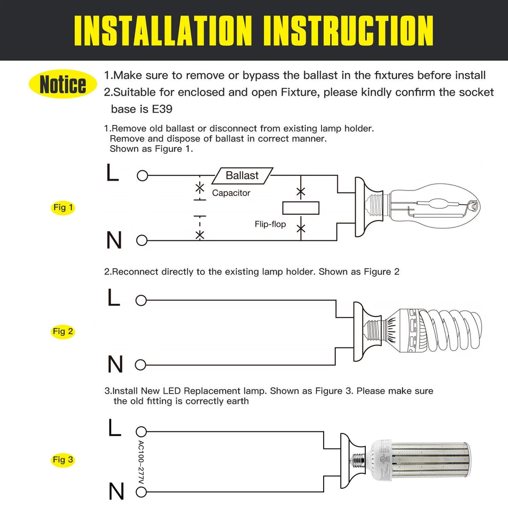 Product Description 160W LED Corn Cob Bulb for Gas Station Warehouse Airport Store Large Area Light 【Super Bright】 160W led corn cob with 22400 lumens and 360 degree beam angle fits to be 700W HID Replacement retrofit. The installation height is recommended between 16ft and 18ft. 【90% Energy Saving】The LED corn light reduce more than 90% electricity consume than traditional light. Available for working voltage from 100VAC to 277VAC 【Quality Listed】The industrial quality light passed UL certification. It offers a safer using at home, commercial, industrial area. 【Easy Installation】E39 Base is easy to Connect directly a screw base. Must be remove or bypass the ballast in your electric circuit before installation. 【Long Lifespan】This bulb has 50,000 hours lifespan. Offering at least 11 years of lighting time if used 12 hours a day. 【Warranty】We provide with 5 years warranty for all our bulbs. If any problem or question about bulbs please contact us by email. We will reply within 24 hours. Product description The LED cob bulb are UL/DLC listed with outstanding industrial quality, superb energy efficiency, long lifespan and easy installation. Compared with traditional light bulbs, we provide brighter lighting and wider applications, but we have achieved up to 90% energy saving. So our LED light bulbs can help you save more than 90% of electricity bills. The design of Non-flickering No UV or IR radiation can provide higher stability and reliability when using the bulbs. Feature: 1.UL Listed 2.Replace 7 00W HID bulb 3.Instant lighting 4.6K high voltage surge protection 5.Non-flickering No UV or IR radiation Technical Data: 1.Lighting Technology: LED 2.Bulb Shape: Corn Cob 3.Rated Power: 160 watts 4.Input Voltage: AC100-277V 5.Bulb Base: E39 Base 6.Power Factor: >90% 7.Power Efficacy: 140 Lm/W 8.Color Temperature: 5000K/6000K 9.Color Rendering Index (RA) : >80 10.PC Cover: Transparent 11.Materials:Aluminum+ASA 12.Lifespan: 50,000 hrs Wide Application: Indoor High Bay Area: warehouse, factory, workshop, shopping mall, church, garage, grocery, car wash-shop, gym, basketball court, tennis court, office, garden, community, back-yard, aircraft storage, farm, restaurant, airport, subway, convention center, swimming pool etc. About Us Payment Shipping Returns Contact Us SHENZHEN NUOGUAN TECHNOLOGY CO. LTD founded in 2010. We are high-technology comany specialized in manufacture Commercial and industrial LED light. Advanced production equipment and excellend R&D ability help us to combining service ,production sell together provide top-level products to our customers. 1. Payment is expected within 7 days of auction close. Or Unpaid Items will be forfeited per eBay . 2. Taxes may be applicable at checkout as states adopt new laws and regulations regarding sales tax collection. 1. We ONLY ship to USA . 2. Orders processed within 1-2 business day of payment verification. There’s no Delivery service or courier service on Saturdays, Sundays or Public Holidays. 3. We have 3 different warehouse in US,so due to stock status and time differences, we will choose to ship your item from our first available warehouse for fast delivery. 4. We offer Free Shipping within the Lower 48 states! All packages are sent via UPS or USPS.The delivery time for UPS Ground is typically 2-5 business days. We strive to ensure 100% satisfaction for each and every one of our customers. we offer a 30-day 100% money-back guarantee on all eBay orders. If your item isn't just as you wished, simply send it back to us and we'll refund or replace your item. Please note that all returns must be authorized by our Customer Service department. please contact us though message first if you have any problem. USA Warehouse. Fast shipping! We are appreciated your purchasing form our eBay store. Office Time: 9:30 - 18:30, Monday - Saturday (UTC+8) Please contact us with eBay Message. We will respond you within 24 hours on business day. About Us SHENZHEN NUOGUAN TECHNOLOGY CO. LTD founded in 2010. We are high-technology comany specialized in manufacture Commercial and industrial LED light. Advanced production equipment and excellend R&D ability help us to combining service ,production sell together provide top-level products to our customers. Payment 1. Payment is expected within 7 days of auction close. Or Unpaid Items will be forfeited per eBay . 2. Taxes may be applicable at checkout as states adopt new laws and regulations regarding sales tax collection. Shipping 1. We ONLY ship to USA . 2. Orders processed within 1-2 business day of payment verification. There’s no Delivery service or courier service on Saturdays, Sundays or Public Holidays. 3. We have 3 different warehouse in US,so due to stock status and time differences, we will choose to ship your item from our first available warehouse for fast delivery. 4. We offer Free Shipping within the Lower 48 states! All packages are sent via UPS or USPS.The delivery time for UPS Ground is typically 2-5 business days. Returns We strive to ensure 100% satisfaction for each and every one of our customers. we offer a 30-day 100% money-back guarantee on all eBay orders. If your item isn't just as you wished, simply send it back to us and we'll refund or replace your item. Please note that all returns must be authorized by our Customer Service department. please contact us though message first if you have any problem. Contact Us USA Warehouse. Fast shipping! We are appreciated your purchasing form our eBay store. Office Time: 9:30 - 18:30, Monday - Saturday (UTC+8) Please contact us with eBay Message. We will respond you within 24 hours on business day. You may also like 100W LED Barn Light with Dusk To Dawn Photocell Outdoor Garden Yard Night Light 69.05 USD Free shipping 200W UFO LED High Bay Light Industrial Fixture For GYM Warehouse Workshop 120V 99.05 USD Free shipping 100W LED Post Top Light For Garden Yard Parking Lot Road Circular Area Pole Lamp 138.74 USD 154.15 USD Fre