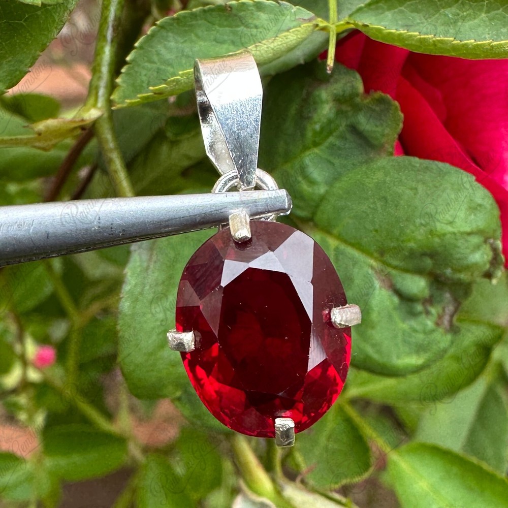 $ 23.7716.10ct Natural Red Ruby Pendant in 925 Sterling Silver Handcrafted Jewelry