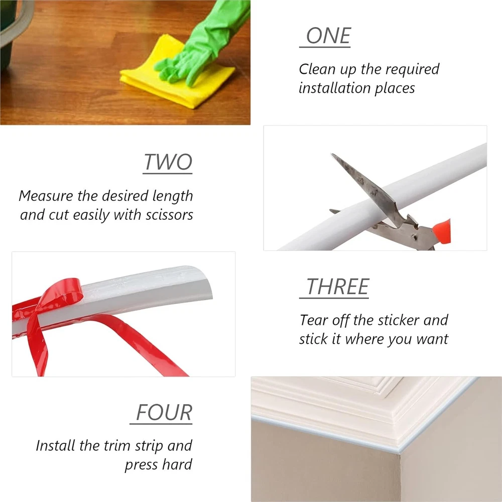 16.5 Feet Flexible Quarter-Round Trim for Wall Edges 198.0x0.8x0.5in White New Size:16.5FT Material: Polyvinyl Chloride (PVC) Color: White Product Dimensions: 0.8"W Item Thickness 0.5 Inches Self-Adhesive Design: Flexible Molding Trim Wall Trim Made of high quality PVC material. Flexible peel and stick crown molding trim is practical, Paintable, waterproof, durable and bendable. Our flexible trim adheres to virtually any surface, including walls, doors, mirrors, and more, for decorating and beautifying your home. Durable and flexible: 1/2" (thickness) X 4/5" (width) X16.5 feet (length) Flexible Quarter Circle Molding Trim. flexible decorative molding, high viscosity and durable, thicker and denser than other wallpaper borders. Quarter round molding ceiling trim easy to use, you just need to clean the surface ahead of time, measure the location, cut the length of the tile trim to your needs, then peel off the backing and press firmly on a smooth and dry surface surface to give your home an elegant look. Adhesive wall decoration sticks to almost any corner (tile, plastic, marble, metal, glass, wood, smooth walls, exterior walls), perfect for bathroom, bedroom, living room, kitchen, TV backdrop, moldings, skirting , ceilings, borders, cabinets, mirrors, etc. Return Policy: We offer a 30 day return policy from the receiving date. Please contact us for a Free Return Label. Please use our return label so it will go back to our supplier and we can do a refund or replacement afterwards. Feedback: Your satisfaction is very important to us! If you have any problem with your order, please contact us and we will do our very best to make you satisfied. As long as you are happy with your purchase, please leave a positive feedback for us. We will always leave you a positive feedback in return. If you have any problem with your purchase, please do not leave a negative feedback. Please Contact us ... and your issue will be solved quickly and positively We are a small family-owned business trying to make a living, not a huge company that does not care ... We will ALWAYS do our best for you!