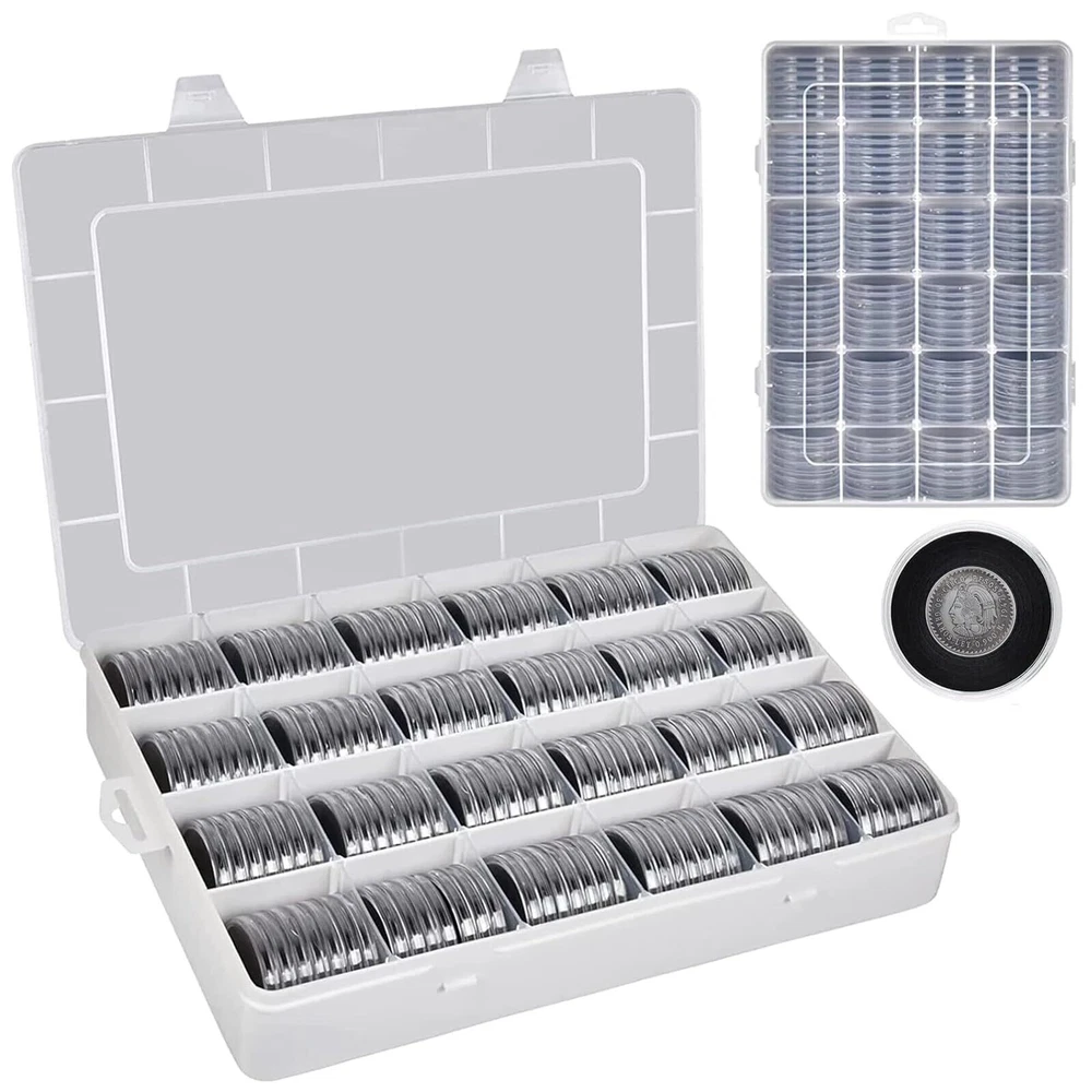 168 Pcs 46mm Coin Capsules Case with Foam Gasket and Plastic Storage Organize...