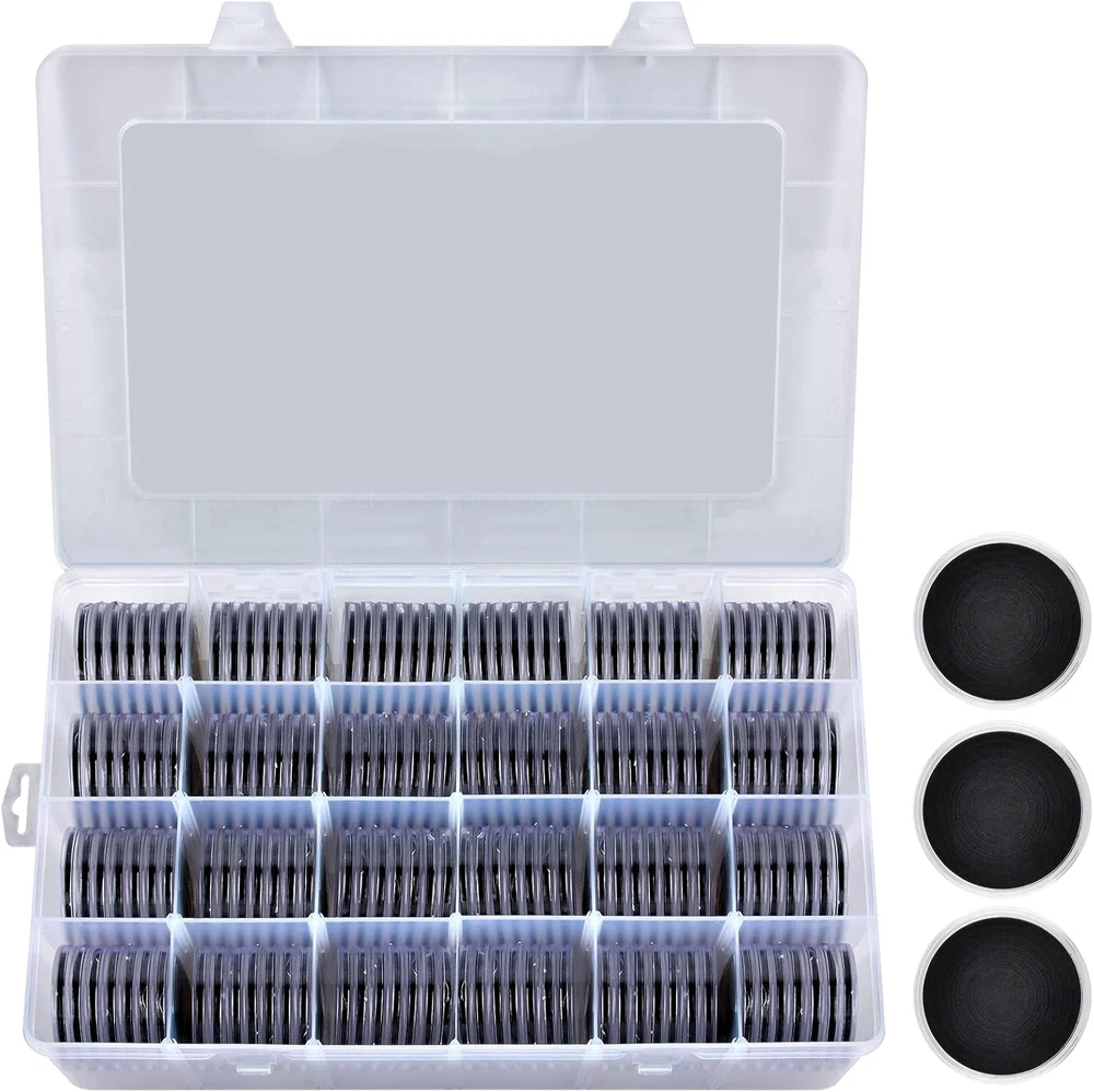 The 168-Piece Coin Capsule Set is an essential addition for any serious coin collector. This comprehensive set includes 168 high-quality 46mm coin capsules along with a variety of foam gaskets in six different sizes (20/25/27/30/38/46mm), providing versatility for various coin types. The included plastic storage box, measuring 13.25 x 8.9 x 2.25 inches, features 24 grid compartments and 20 removable layers, allowing you to organize and display your prized coin collection efficiently. This set is designed to keep your favorite coins safe and secure while showcasing their beauty. Constructed from durable, heavy-duty plastic, the coin holder is designed to withstand wear and tear, offering superior protection compared to traditional acrylic options. The transparent design allows for easy viewing of both sides of your coins without the need for handling, ensuring they remain in pristine condition. With its user-friendly crescent design, accessing your coins is effortless, making it an ideal solution for both display and storage. Whether at home or on the go, this coin capsule set is perfect for collectors looking to preserve their collections. Includes 168 high-quality coin capsules for extensive coin collection. Features six sizes of foam gaskets to accommodate various coin types. Durable plastic construction ensures enhanced protection against damage. Transparent design allows for clear visibility of coins without direct contact. Convenient storage box with removable layers for easy organization and transport.
