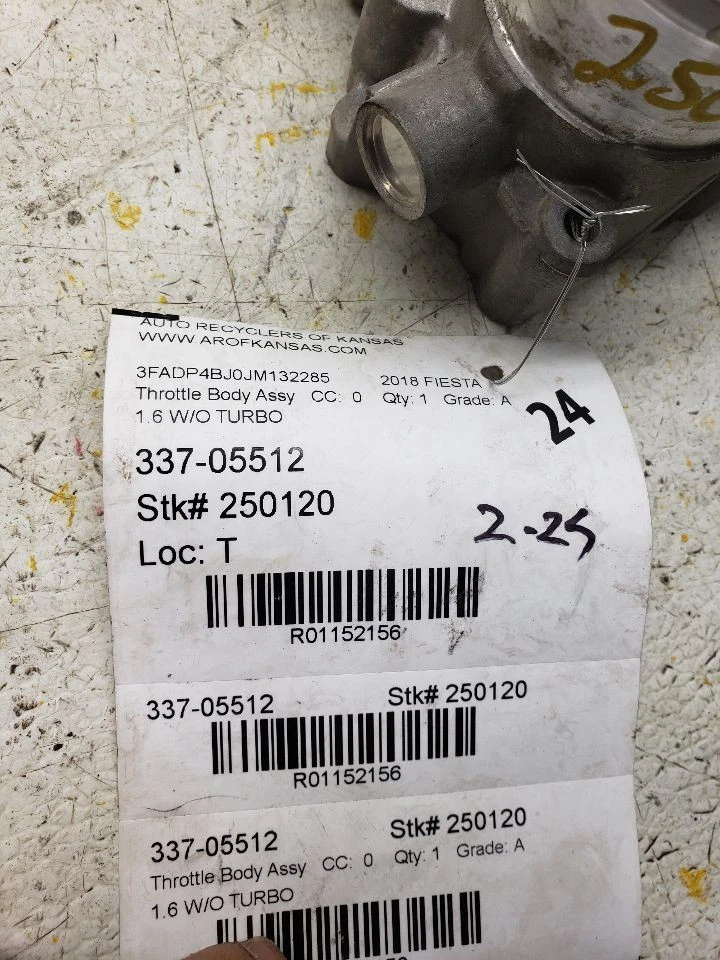 Welcome to our eBay Store! Throttle Body 1.6L Without Turbo Fits 14-19 FIESTA 1152156 Description Please read the entire listing before bidding. Our parts are not new! We sell only recycled automotive parts! All parts are tested to the fullest means possible to ensure only the highest quality products are listed in our eBay Store. We make every effort to provide you with the best photos of the product listed. See the seller’s listing for full details and description of any imperfections. Donor Vehicle VIN: 3FADP4BJ0JM132285 Model: FIESTA Year: 2018 Mileage: 54000 (0 = not available or unknown) Stock Number: 250120 Store Number: 1 Part Detail Part Grade: A Part Category: U Part Placement: Notes: 1.6 W/O TURBO This part will fit these makes and models with these options ESCAPE 13-16 Throttle Valve Assembly; 1.6L FIESTA 14 (throttle valve assembly); 1.6L, w/o turbo; from 12/11/13 FIESTA 14-17 (throttle valve assembly); 1.6L, w/turbo FIESTA 15-17 (throttle valve assembly); 1.6L, w/o turbo FIESTA 18-19 (1.6L), w/o turbo FIESTA 18-19 (1.6L), w/turbo FUSION 13-14 Throttle Valve Assembly; 1.6L TRANSIT CONNECT 14-16 Throttle Valve Assembly; 1.6L (turbo) WARRANTY / GUARANTEE Most parts we sell through eBay Motors come with a 30-day money back guarantee unless otherwise stated. The 30 day period starts when you take possession of the part. No labor warranty is provided. In the event a part sold with a warranty fails to operate within the warranty period we will replace the part(s) with a functionally equivalent part or refund the part purchase price, at our option. To return an item you must contact us via eBay Message within the 30 day period to obtain a RMA number (return material authorization). Original shipping charges and return shipping charges are not refunded. Once you obtain an RMA number, ship the item back to Auto Recyclers of Kansas, 1200 E Macarthur, Wichita, KS 67216 along with the RMA number. SHIPPING NOTES ABOUT US HELP Auto Recyclers of Kansas ships to US addresses within the 48 states only via UPS ground. International orders are sent via ebay's Global Shipping Program . Pick up at our facilities is available. Please message us prior to your purchase to arrange pick up. Items will be shipped within 1-2 days of purchase. Please allow up to 10 days for delivery unless item falls under ebay's Guaranteed Delivery p rogram. Most areas in the US are within 5 days. If an item arrives damaged, please contact us via eBay Message within 24 hours for instructions. If you have a question about a part please contact us BEFORE purchasing. Our main contact method is by eBay Messages. We try to answer all messages within 24 hours. If we are unable to answer your questions before the listing ends the item will be re-listed again soon for you to purchase. Core Charge. Core is an acronym for ‘Cash On Return’. A core charge is sometimes applied to rebuildable parts such as engines or alternators that can be redeemed for a portion of their original price. If the part you are purchasing has a core charge applied, it will be noted in the description. Parts Grading. A standard code system is used to communicate the condition and quality of a part between automotive recyclers, automotive repair shops, and insurers. Knowing how these codes are used will help you understand whether the part meets your expectations before you buy it and what you can expect from the part when you receive it. A Grade - The highest quality part. It is of low miles and/or exceptional condition for its age. B Grade - The second level quality part. It is of average miles and normal condition for its age. C Grade - The third level quality part. It has high miles and/or light damage. No Grade - A part that has not yet been graded.