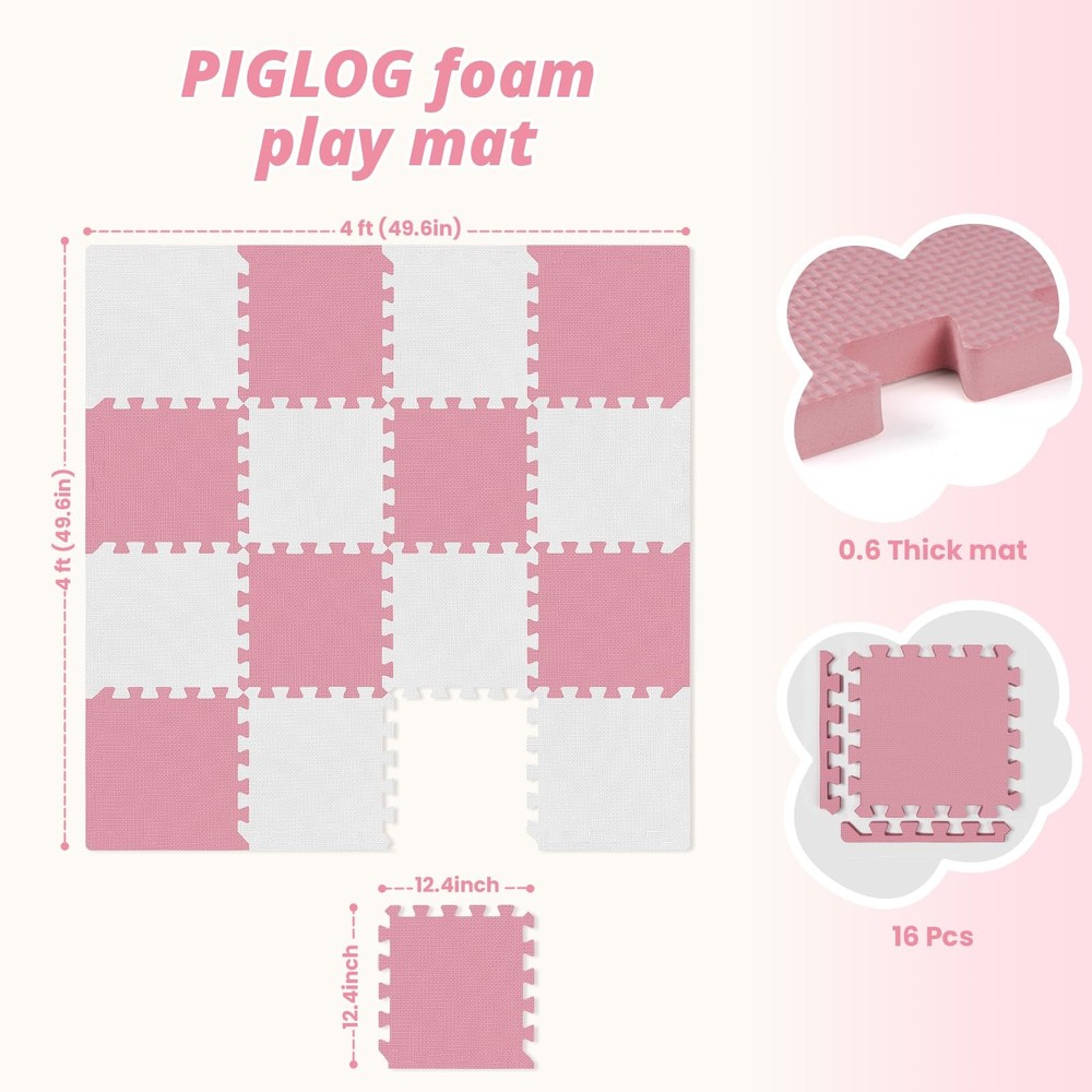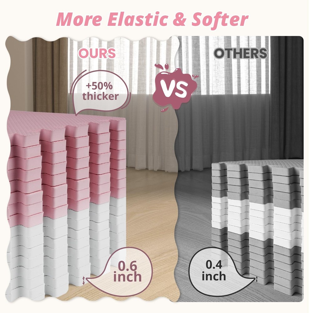 Thick Foam Mat: These 0.6-inch extra-thick foam floor tiles for kids provide a safe area for kids to play, preventing them from bumping into things while playing. Easy to Assemble: The interlocking design makes the puzzle mat easy to assemble and disassemble, while the waterproof design also makes the mat easy to clean. 16 Square Feet: The baby floor play mat is assembled to be 47.2*47.2 inches, providing ample space for the baby to play. Premium Material: Our baby play foam mat is made of EVA foam, BPA Free, creating a safe and healthy playing space for children of different ages. Multiple Uses: Our foam mat is suitable for different types of scenes and activities. It can be used as a play mat for Kids Gym, Nursery, Playroom. The mat is also suitable for outdoor activities such as camping or picnics.
