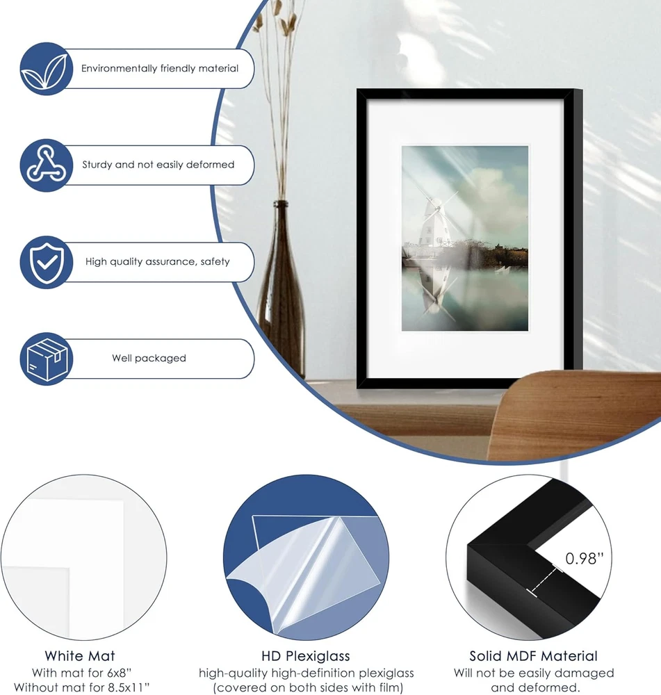 Store New Arrivals Add to Favorite View Feedback Contact 16X20 Picture Frame Set of 6, Display Pictures 11 X 14 with Mat or 16 X 20 without Mat for Wall Mounting Display, Poster Frames Collage for Wall Decor, Black. Description Style Modern, Minimalist, or Contemporary Number of Items 6 Country of Origin China Theme Wood Unit Count 6 Count Batteries required No Target Audience Unisex Adult Product Dimensions 20"L x 16"W Frame Material Engineered Wood, Wood Finish Type Black Finish Frame Type Poster Frame Item Weight 12.87 pounds Occasion New Baby, Wedding, Graduation, Anniversary Special Feature Matted Orientation Vertical, Horizontal Mounting Type Wall Mount Color Black Cover Material Plastic Shape Rectangular Finish types Black Finish Size 16x20 STURDY MATERIAL: The 16 x 20 picture frame set includes 6 well-built black picture frames, these super high-quality frames are made of sturdy wood rather than plastics, great looking. The mounting board is a durable MDF wood. Sturdy, durable, and anti-drop it can protect your photo against dust, moisture, or insect damage, keeping it new for years. VERSATILE DISPLAY: This 16x20 frames black can hang horizontally or vertically for a gallery-style wall mount. Watch your cherished photos come to life and add interest to a wall or tabletop in your home. SIZE: 16x20 frame matted to 11x14, or if you remove the mat, it can fit a 16x20 picture. They are suitable for displaying your poster, landscape photos, artwork, etc. GREAT GIFT: Each 16 x 20 frame with a black finish. Simple design, smooth lines. These chic and beautiful frames make for a great gift for a wedding, baby shower, graduation, anniversary, holiday, birthday, or vacation. PROTECTIVE PACKING: Our picture frames 16x20 are carefully packaged to ensure product safety. Don't have to worry about receiving damaged products. Product Description Preserve your most cherished memories with the PEALSN Picture Frame, the perfect addition to your home decor. THE PEALSN PICTURE FRAME ADVANTAGE: Wall Display Includes D-ring hooks to easily hang artwork or photographs in either portrait or landscape orientation; making them perfect for any use. Protective Plexiglass The transparent plexiglass front and the attached cushion can not only protect the integrity of your artwork, but also create a beautiful and professional presentation effect. In addition, the plexiglass is shatterproof, so you don’t need to worry about falling off the table and causing it to break High-Quality Material MDF medium-density fiber material has the advantages of not being easily deformed and not easily affected by moisture. The black wood grain finish has the advantages of moisture-proof, anti-corrosion, abrasion resistance, and high temperature resistance. Simple and Thoughtful Design Simple design, smooth lines, Randomly match and decorate every corner of life. For a variety of scenarios ABOUT US We offer the best prices around on high quality products. Our E-store includes media such as books, movies, music and games while offering electronics, toys, sporting apparel, clothing, tools, general home, garden items and more. SHIPPING We are always working hard to ensure your package arrives as soon as possible. Please understand that some factors like weather, high postal traffic, and the performance of shipping companies are outside of our control. We offer free shipping to the lower 48 states and ship within 2 business days of payment, usually sooner. We do not accept P.O. Boxes. Please provide a physical address. For shipping outside of the continental USA, we only use eBay's Global Shipping Program.The item is shipped to KY and then sent to the rest of the world. International customers are responsible for all duties and taxes. Continue to check out in order to calculate costs for shipping the item to your country. Messages regarding eBay's Global Shipping Program MUST be directed at eBay EXCLUSIVELY. RETURNS We offer a 30-Day Return Policy on items which you are not completely satisfied with. You have the option for a full-refund or an exchange of the item. No returns are available on items shipped outside of the USA. PAYMENT We accept PayPal. CONTACT US This page content is yet to come Please ad us to your favorite seller and visit again later Thank You CUSTOMER SATISFACTION We try our very best to make sure every customer is completely satisfied. If there's a problem, message us! We're happy to help. WE ACCEPT Copyright © 2021 AutoDS. | All Rights Reserved