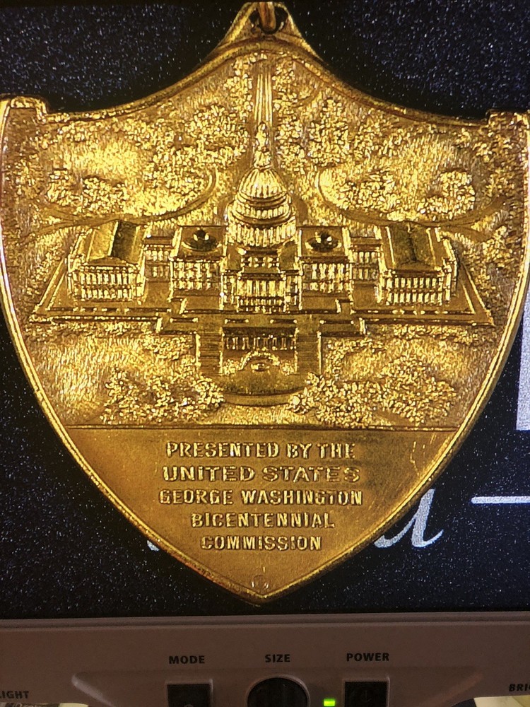 This is a 1732-1932 George Washington Bicentennial Medal with a personal letter that celebrates the 200th anniversary of Washington's presidency. The bronze medal, minted in the United States, is a rare and valuable collector's item. The inclusion of a personal letter adds a unique and historical element to the medal, making it a special piece for any numismatist or history enthusiast. These medals were issued in 1932 as part of the nationwide celebration of George Washington's bicentennial. The medal was presented by Wm. Tyler Page, clerk in the House of Representatives for many years. This is a truly rare piece that any museum would love to own.