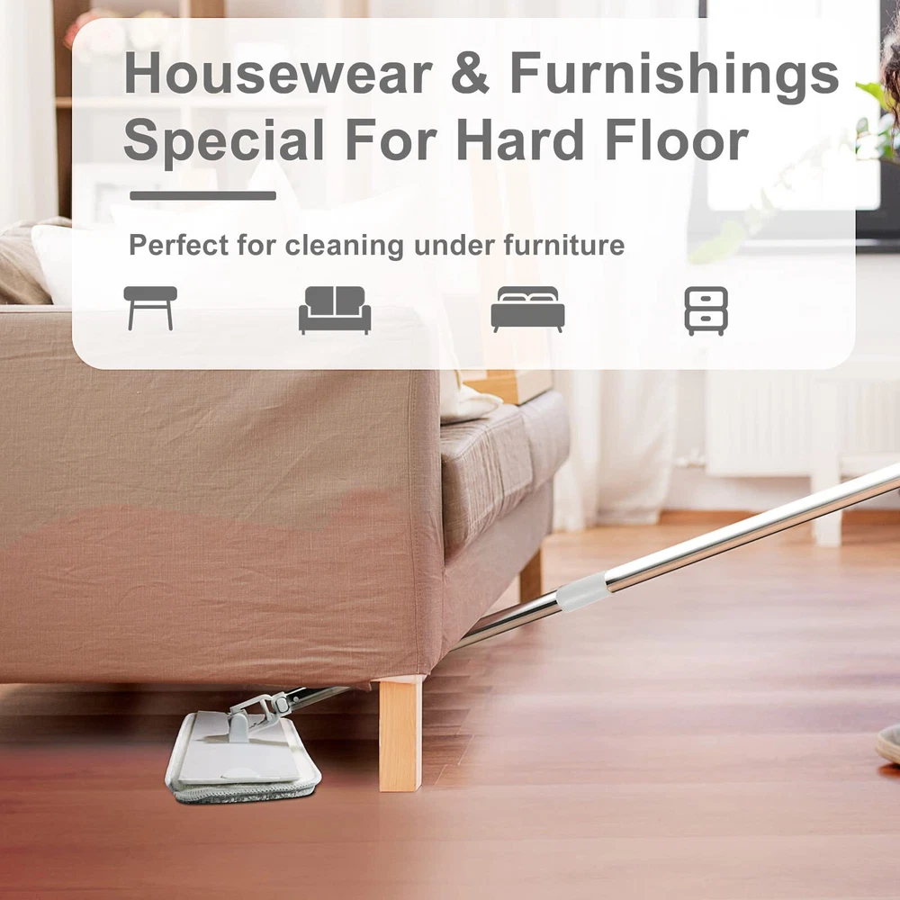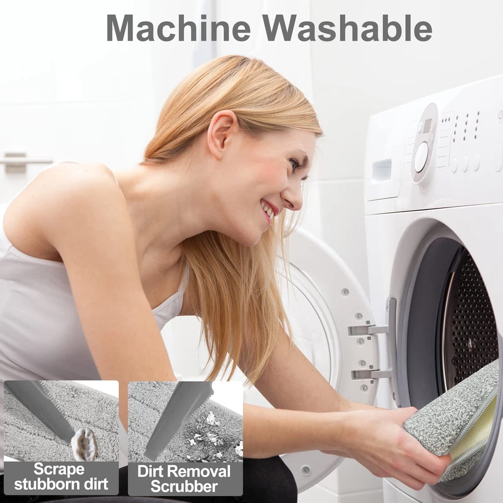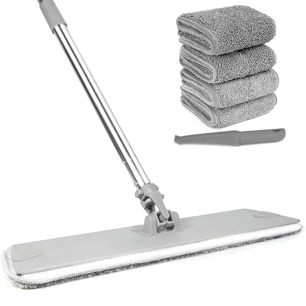 【18" Aluminum Mop Head】With it’s large 18 Inch base can cover a lot of areas in a single scan, clean in high efficiency with less effort. Industrial mop, Stainless steel handle which withstands friction and frequent use, the mop head is made of solid aluminum alloy, which is more durable than plastic mop head. Velcro design makes the pad easier to attach and replace. 【4 Pack Wet Mop Pads】The flat mop is equipped with 4 washable pads, which can be reused, cleaned, refilled and replaced. The mop pad can be easily attached to the fixed Velcro of the mop head, and can be removed and cleaned quickly and easily. 【45 Inch Stainless Steel Handle】Stop straining your back, the handle length of the microfiber mop is adjustable and can be extended by 24-45 inches, suitable for people of different heights. 360 rotatable mop head helps cleaning furniture, cabinets and other hard to reach areas. Lightweight design for dusting on walls and mopping under sofas . 【Microfiber Mop Pad】 The microfiber mop pad acts like a magnet to absorb and pick up debris easily, locks them in the fabric fibers until the fabric is washed. Mop pad can be suitable for drying wiping to attract dirt, dust and hair. 【Mop Pad Cleaning Brush】The mop pad cleaning brush that comes with the mop allows you to clean the mop pad more efficiently and easily.