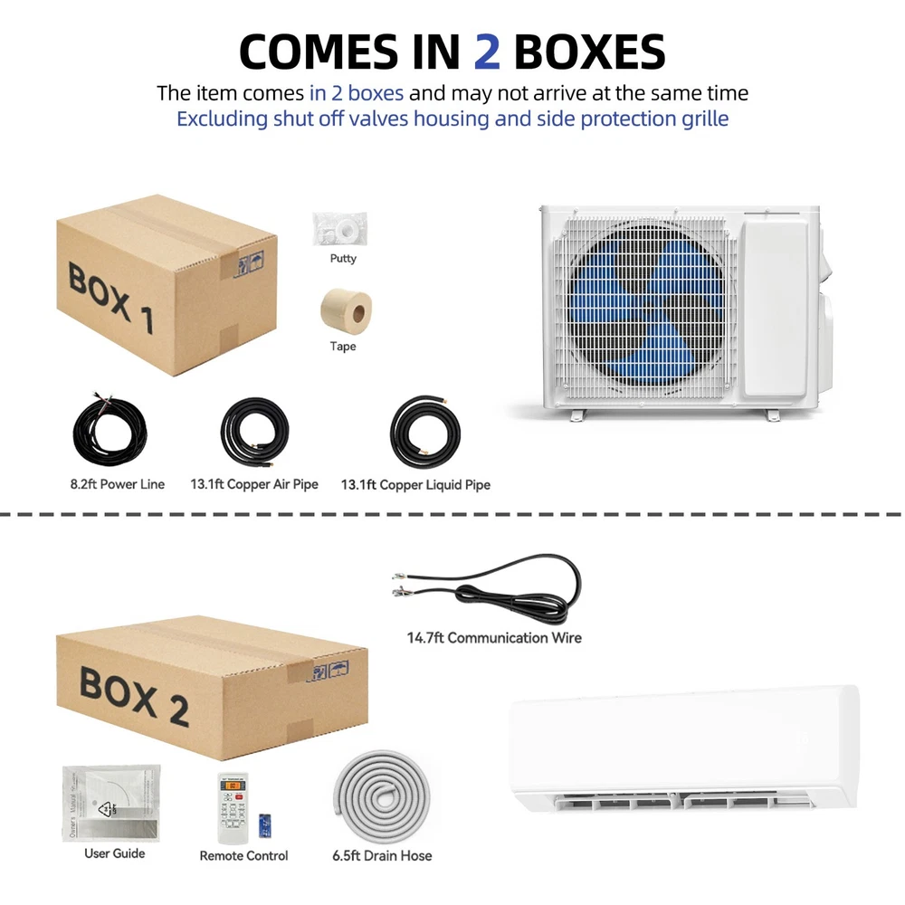 18000 BTU Air Conditioner Mini Split Cool Heat Pump System Ductless SEER19 208/203V Product Description NOTE: Professional Installation would be Highly Recommended. Descriptions: 1. Material: Iron, Stainless Steel, Plastic 2. Color: White 3. Mounting: Wall-Mounted 4. Special Design: Mini Split AC, Inverter Compressor, WiFi/App Compatible, SEER2-19, 220 Voltage, 1250 SQ Ft Coverage, 47 dB Noiseless, Air Flow 50ft, Heat Pump 1.5 Ton, 5-AC Mode 5. Suitable For: Home, Office, Bedroom, Living Room, Work Space, Cafe, Restaurant, Hotel Room Features: 1. Smart Energy-Efficient Comfort: Enhance your living space with this 18,000 BTU wall-mounted air conditioner, designed to cool and heat areas up to 1250 sq ft efficiently. Featuring an advanced inverter compressor and a high SEER2 rating of 19, it delivers powerful performance with minimal energy consumption. With app control via Amazon Alexa and Google Home, you can conveniently adjust settings from anywhere. Operating at a quiet 47 dB, this unit is perfect for creating a comfortable environment in homes, offices, and living rooms. 2. Versatile Climate Control: Experience year-round comfort with this energy-efficient air conditioner offering 4-modes: cool, dry, fan, and heat. Its inverter technology ensures consistent temperature control between 60°F and 90°F while keeping noise levels as low as 47 dB. With smart compatibility through Amazon Alexa and Google Home, you can personalize your indoor climate effortlessly. Perfect for residential and office spaces, this unit combines style and functionality for a superior cooling and heating experience. 3. Noiseless -Quiet Operation: Enjoy a peaceful atmosphere with this wall-mounted air conditioner, engineered with a quiet 47 dB operation. The 18,000 BTU cooling/heating capacity efficiently covers spaces up to 1250 sq ft, providing reliable climate control throughout the year. Its inverter compressor and SEER2 rating of 19 ensure energy savings without sacrificing performance. Control your comfort conveniently with voice commands using Alexa or Google Home, making it a smart addition to your living or working space. 4. Reliable Performance for Every Season: Designed for long-lasting comfort, this air conditioner features a durable iron, stainless steel, and plastic construction with a powerful 1.5-ton heat pump. Whether you need to cool or heat your space, the 18,000 BTU capacity ensures efficient operation within a temperature range of 60°F to 90°F. With a timer function ranging from 0.5 to 24 hours, you can schedule cooling or heating based on your lifestyle. Smart app control adds convenience, making it an ideal solution for homes and offices alike. 5. Effortless Installation: This wall-mounted air conditioner comes with a complete package, including an indoor unit, fan compressor, and remote control for easy operation. With app compatibility for Amazon Alexa and Google Home, you can manage your climate settings with ease. The inverter compressor delivers efficient cooling and heating while operating at a low noise level of 47 dB. Covering up to 1250 sq ft, this unit is perfect for home and office environments where comfort and energy efficiency are essential. Dimensions: 1. Air Conditioner: 31,2"L x 7.9"W x 11.5"H 2. Compressor: 27,8"L x 11"W x 20,9"H Package Includes: 1. 1x Air Conditioner Unit 2. 1x Fan Compressor 3. 1x Remote Control *The product will be dispatched separately into 2 packages Shipping 1. Normally the item will be dispatched within 1 business day if payment is cleared before 12pm PST. 2. Please verify the correct shipping address in your PayPal account before making the payment. We only dispatch the item to the address that is sent to us at the time of checkout. 3. We don't ship to Hawaii, Alaska, Puerto Rico, APO/FPO/PO Boxes. 4. We don't provide local pick-up service. 5. Normally we will use USPS, UPS, FedEx & LTL to dispatch items. Payment 1. We accept PayPal and credit card. 2. We will ship to the confirmed Paypal shipping address that is provided with the payment only. Return 1. 30 days Money Back Guarantee. 2. Please contact our customer service to receive a RMA form first if want to return the item. 3. All returned items MUST in new condition with the original package. Contact If has any problem, please contact us by sending an ebay message. Our customer service will resolve the problem as soon as possible. On Dec 3, 2024 at 01:51:16 PST, seller added the following information: On Dec 4, 2024 at 02:25:43 PST, seller added the following information: On Dec 9, 2024 at 03:32:17 PST, seller added the following information: On Dec 17, 2024 at 05:27:11 PST, seller added the following information: On Jan 22, 2025 at 05:01:13 PST, seller added the following information: On Jan 31, 2025 at 01:50:52 PST, seller added the following information: