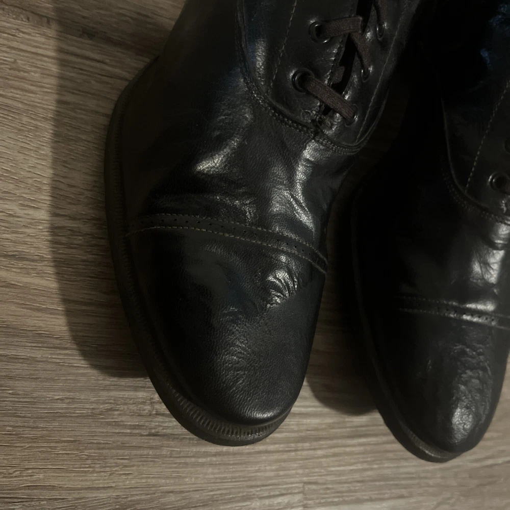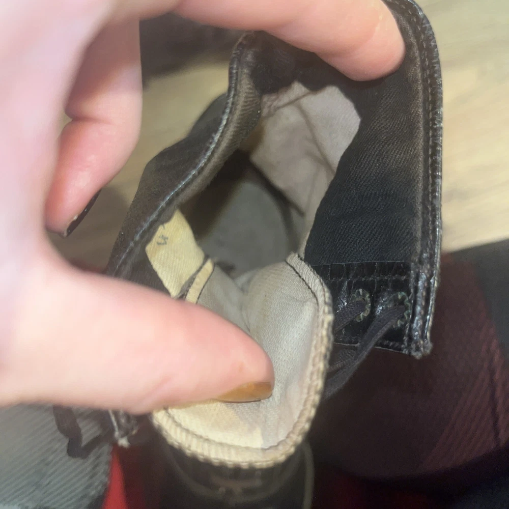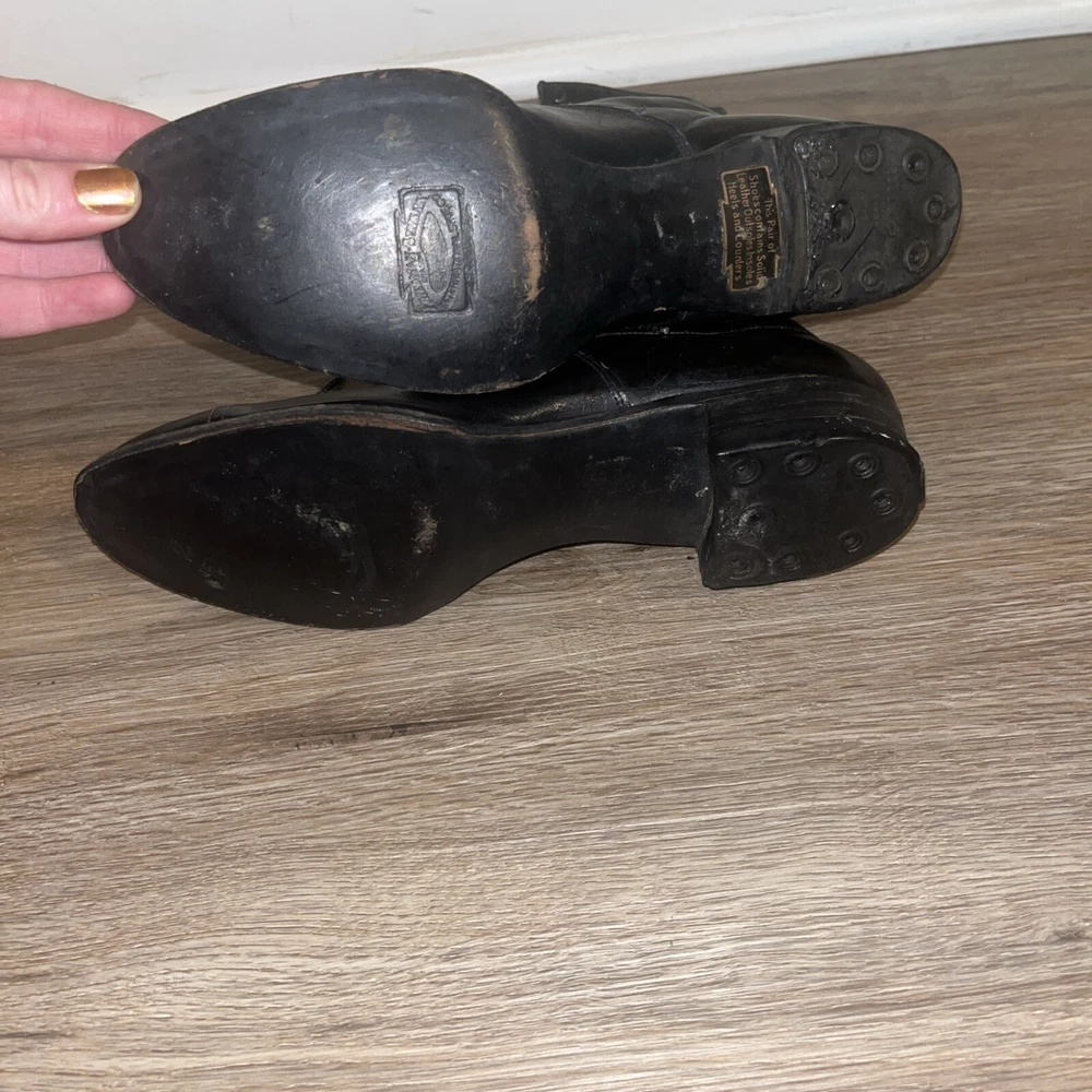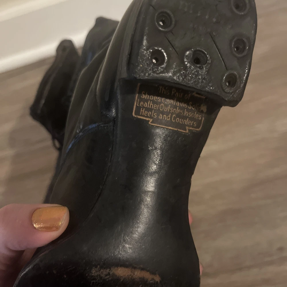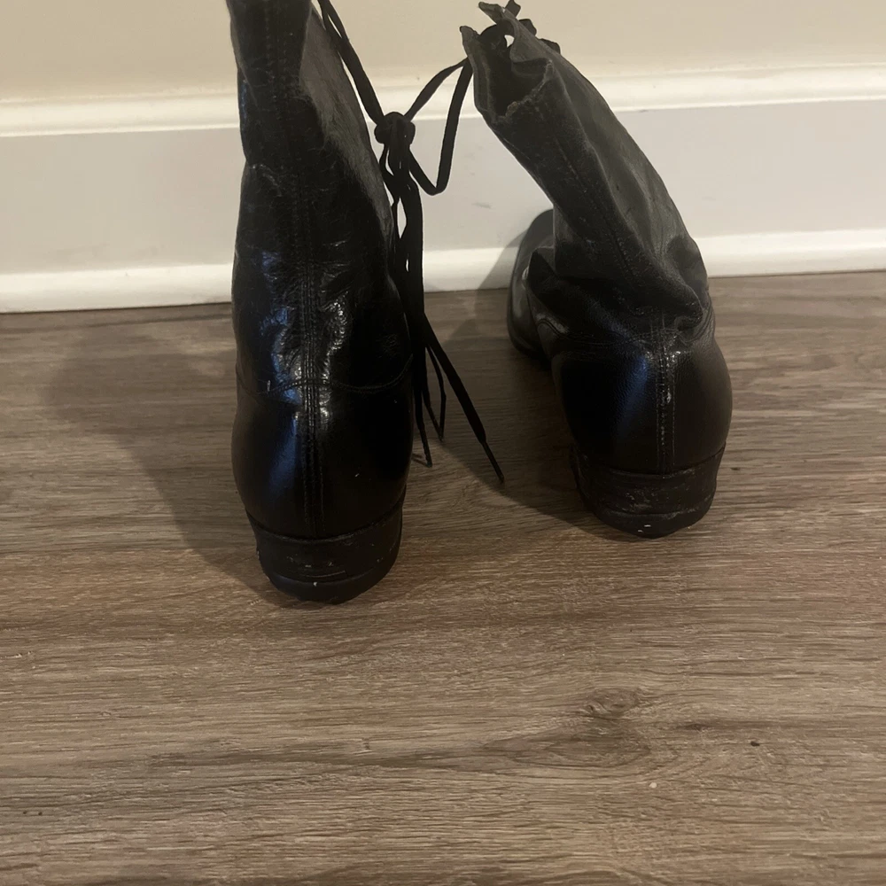 These are ladies Victorian boots from the 1890s, black in color with a lace-up design. Made of leather by Friedman Shelby International Shoe Co., they are original and have a Victorian look. These boots are in a witch or shabby style, perfect for an Edwardian occasion. The US shoe size is 8. This pair of shoes contains solid leather outsole insoles heels and counters.