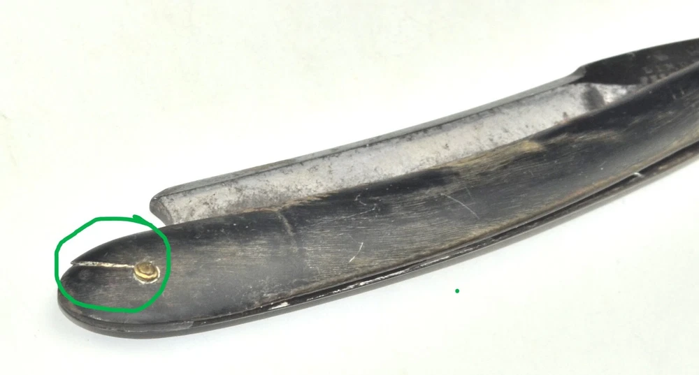 Based on my research in Google this one appears to be quite an old straight, dating it to between 1860 and 1880. There's one crack in the handle. See the last photo. Questions are welcome.