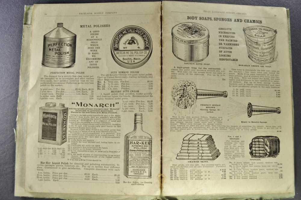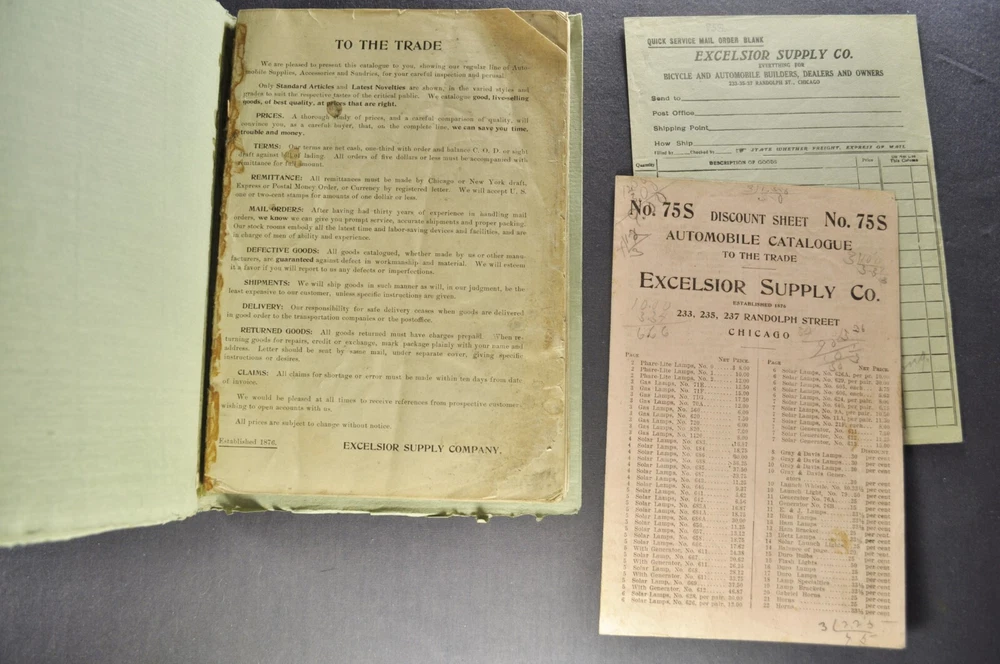 1906-1907 Original Excelsior Automobile Supply Company catalog. The only date I can find is on the 1906 Schebler Carburetor. The photos are of the exact item you will receive. Measures 6.75 x 9.75 inches and 172 pages. Please click on "Visit Store" (below) to browse/search my other eBay items. ONLY PAY SHIPPING FOR ONE ITEM. Receive a SHIPPING DISCOUNT if you buy more than one item in a single order. Click on "ADD TO CART" for each item, (NOT Buy it Now). When you are done shopping, go to your cart and click on "Go to Checkout". It will automatically combine the order so you only pay the shipping charge for one item, the other items in the order ship for FREE. Brochures for shipping are first placed in clear plastic, then between two pieces of slightly over-sized cardboard. This is placed in an envelope clearly marked “Please Do Not Bend”, then shipped with tracking. My goal for any purchase is 5 star service and your 100% satisfaction. Please contact me to resolve any problems rather than leaving negative feedback or low seller ratings. Thanks, Lon at Lloyd's Auto Literature.