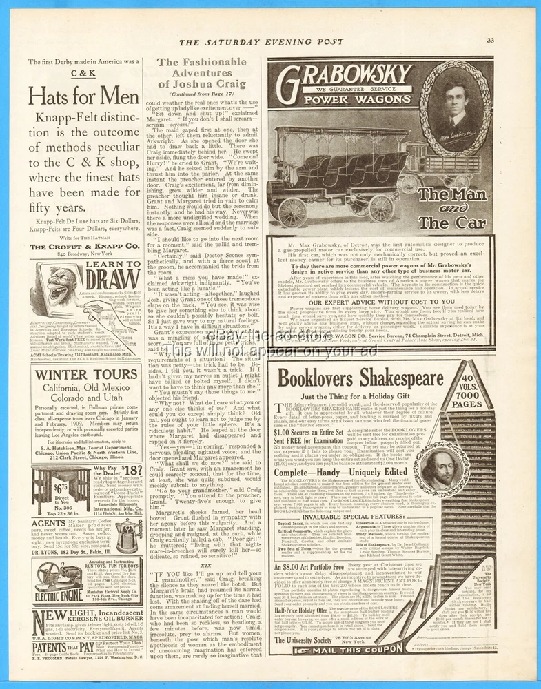Original 1908 Magazine Advertisement Approximate Size: 5" X 6 1/4" Condition: Very Good Miscellaneous: Saturday Evening Post, ephemera, magazine advertising Celebrating our 25th year on eBay! Be sure to visit our eBay store and check out our huge selection of vintage magazine advertisements. Frequently Asked Questions: Q: Do you combine shipping? A: Absolutely! Simply add multiple ads to your cart, and the combined shipping cost will be automatically reflected during checkout. If you encounter any issues, please let us know, and we'll be happy to send you an invoice. Q: How do you ensure the safe arrival of my ad? A: We take extra care in shipping your order. Each ad is sandwiched between two custom-cut, cross-corrugated pieces of cardboard and placed in a plastic resealable sleeve with a thin backer. Your package is then securely shipped in a poly mailer. Q: When will my ad be shipped after payment? A: We pride ourselves on fast shipping! Your ad will be shipped within one business day of receiving payment. Q: Will the "The-Ad-Store" watermark be on my ad? A: Rest assured, the watermark you see on our images is solely for digital protection and will not appear on the printed ad you receive. Q: Can I obtain a digital copy of the ad? A: We exclusively sell original vintage magazine/catalog advertisements and do not offer digital copies. Q: Do you provide feedback for buyers? A: Yes, we value our customers and always leave feedback for buyers. Your satisfaction is our priority! Thank you for choosing us. Feel free to reach out if you have any further inquiries. Happy shopping!