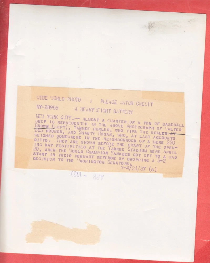 1937 NATS SHANTY HOGAN + YANKS JUMBO BROWN 7 X 9 TYPE 1 GLOSSY