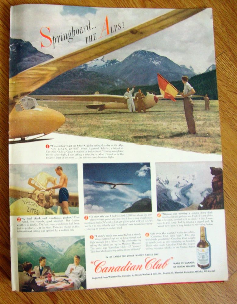 #043013-832 Original Magazine ad in good condition (back cover of magazine with normal wear) Measures 10 1/4" x 13 1/2. New York Ranger Hockey Player Cal Gardner On the inside is Canadian Club Ad 1948. Silver C Glider Samaden Switzerland Pictures are both sides of the Ad FOR COMBINED SHIPPING ON ADS YOU NEED TO USE THE "ADD TO CART" OPTION ON EACH ITEM, ADD ALL ITEMS TO THE CART & PAY AT THE END WITH ONE PAYMENT TRANSACTION. The eBay system will Auto-Combine & only charge one combine Shipping charge.