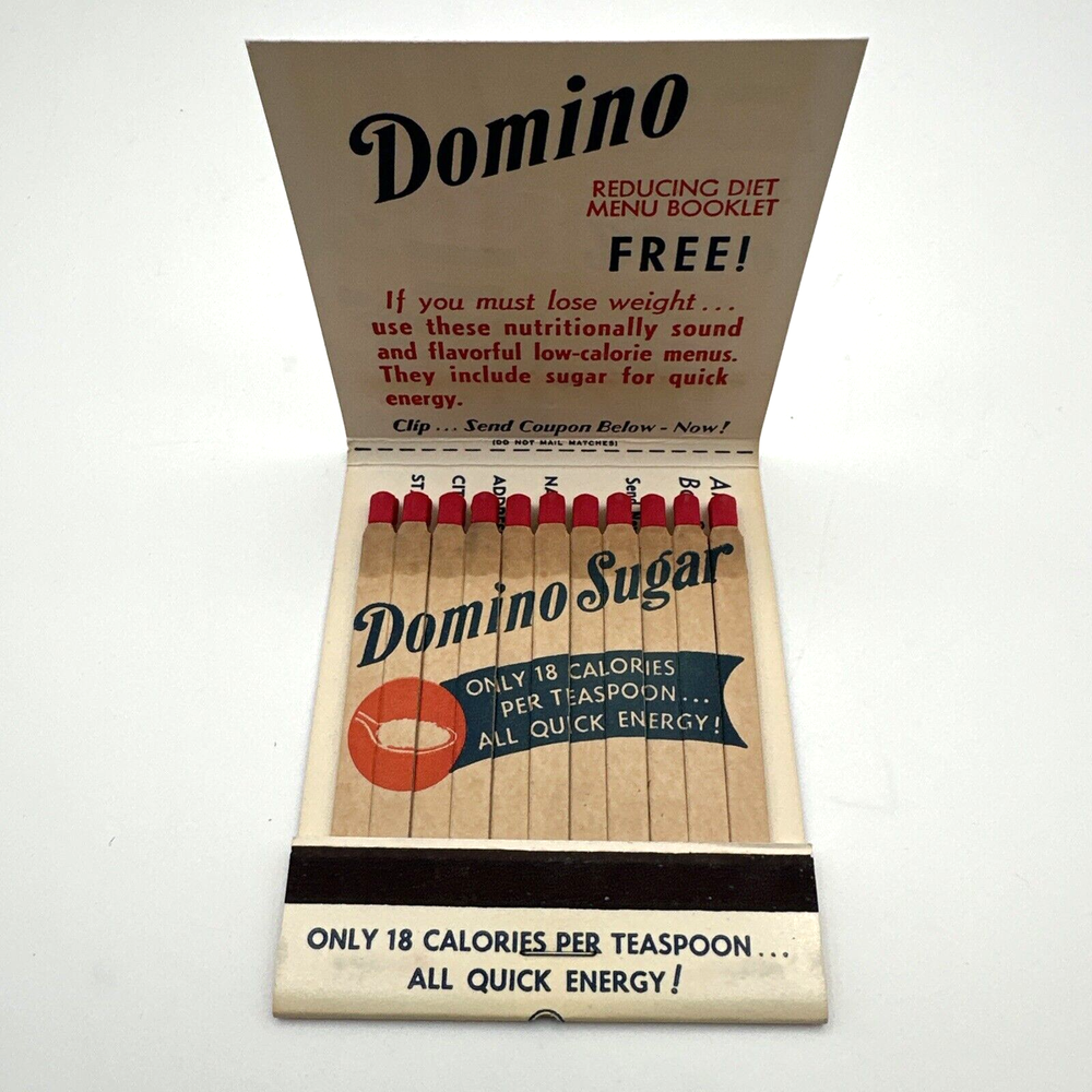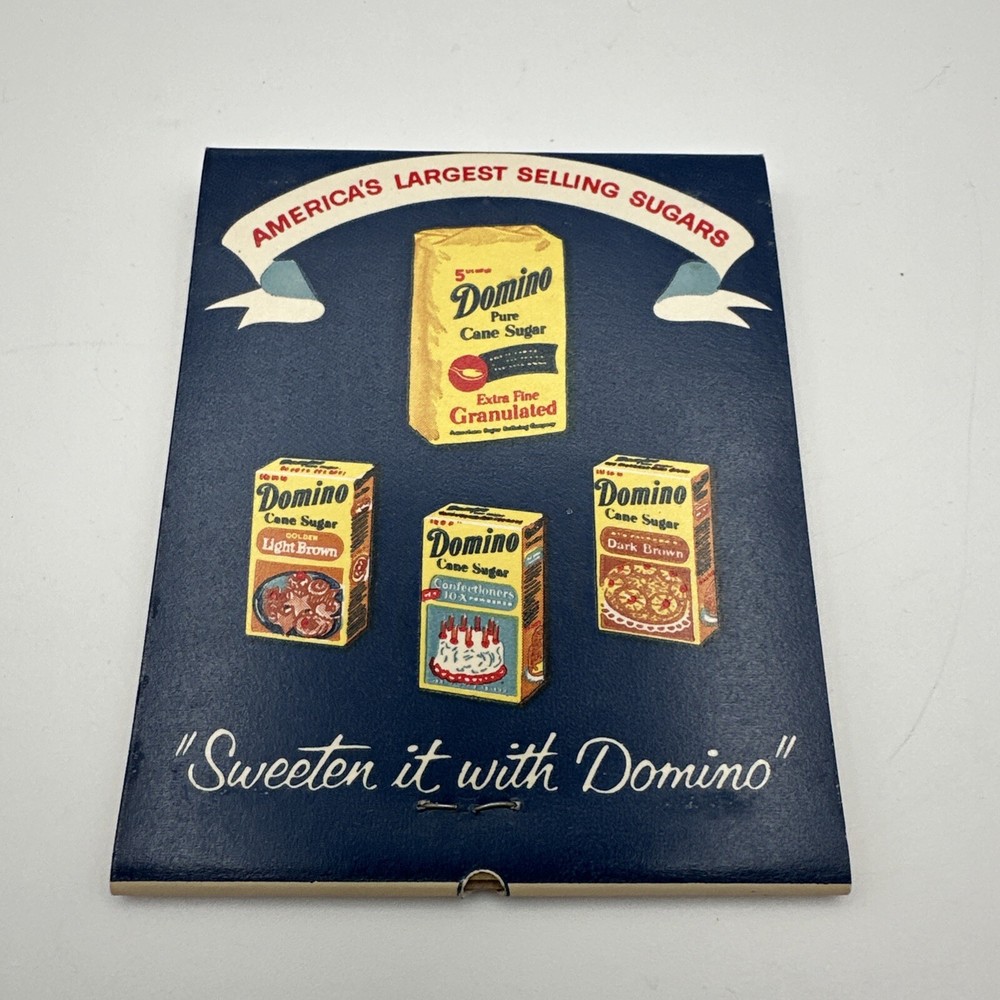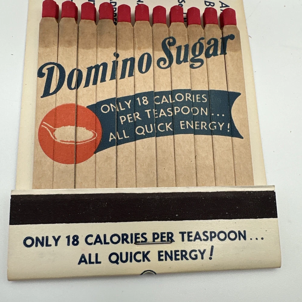 This vintage Domino Sugar Giant matchbook advertising Domino Sugar is a rare find for collectors. Measuring approximately 3 1/4" x 4", it features a full matchbook design with the iconic Domino Sugar logo. Made in the United States, this matchbook is a unique piece of American history that would make a great addition to any collection. The matchbook is in excellent shape and has been well-preserved over the years. It would make a great gift for anyone who loves vintage advertising or is a fan of Domino Sugar. Don't miss out on the opportunity to own this piece of American history. New old stock. See photos,