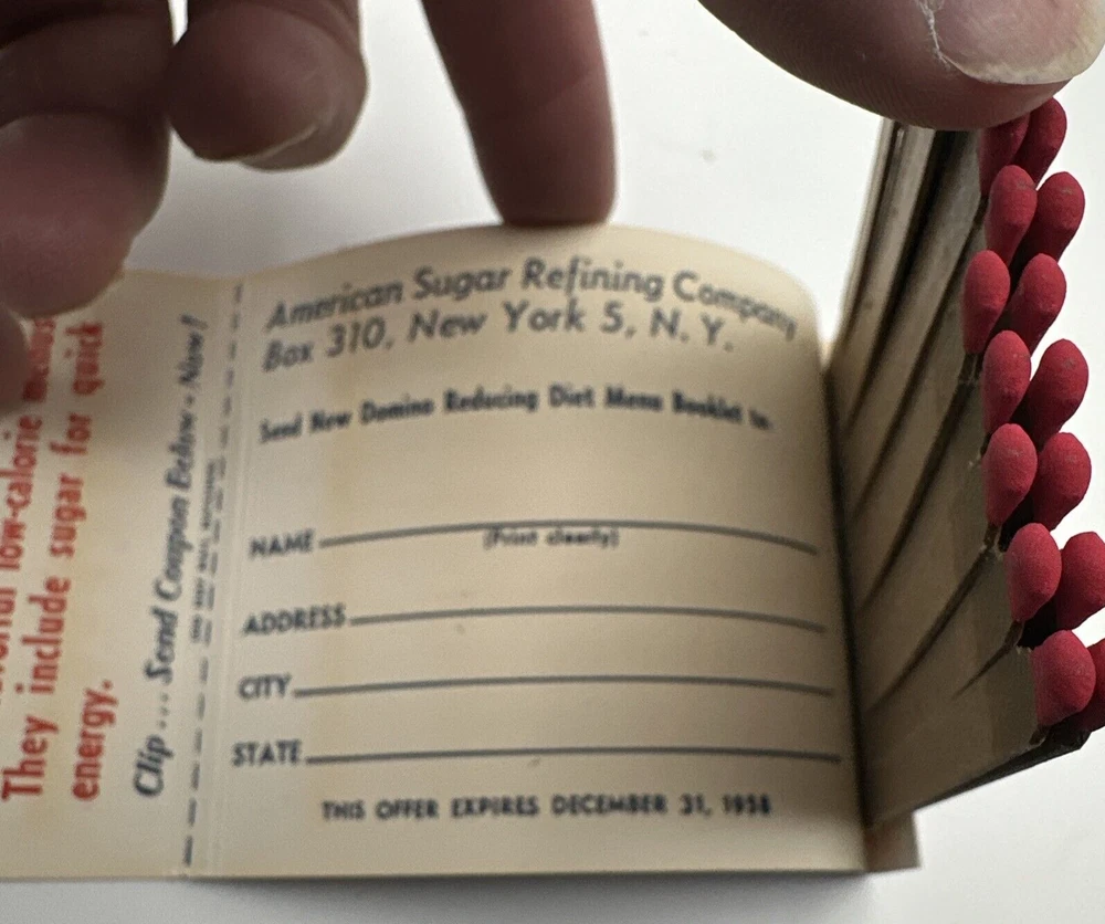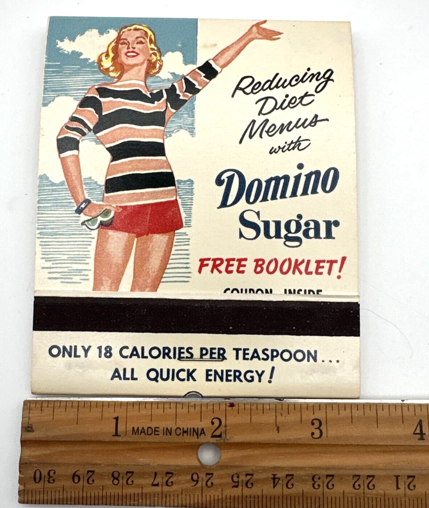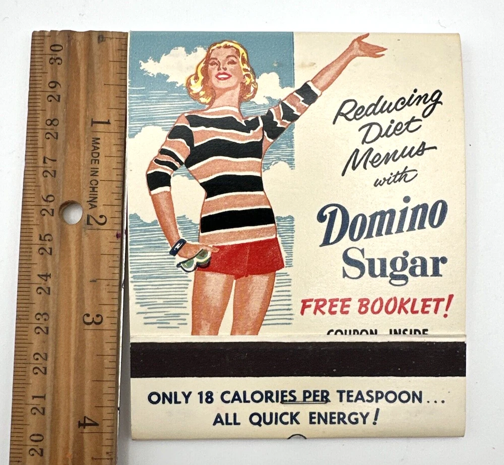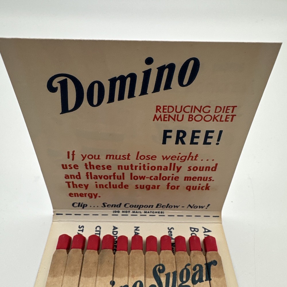 This vintage Domino Sugar Giant matchbook advertising Domino Sugar is a rare find for collectors. Measuring approximately 3 1/4" x 4", it features a full matchbook design with the iconic Domino Sugar logo. Made in the United States, this matchbook is a unique piece of American history that would make a great addition to any collection. The matchbook is in excellent shape and has been well-preserved over the years. It would make a great gift for anyone who loves vintage advertising or is a fan of Domino Sugar. Don't miss out on the opportunity to own this piece of American history. New old stock. See photos,