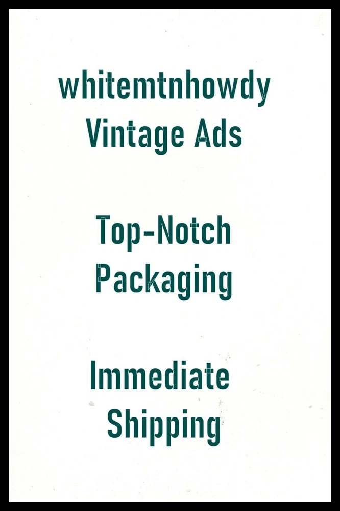 ORIGINAL, magazine advertisement...black border and whitemtnhowdy watermark on image are computer-generated...not on the actual item Always original pages....never copies or reproductions of any kind Ad measures approximately 10.75"x13.75" COMBINED SHIPPING OF AN UNLIMITED NUMBER OF ITEMS FOR ONE, SINGLE-ITEM RATE SHIPPING OPTIONS: *First Class...Rolled in tube w/poly sleeve.....in my opinion, the safest method for shipping ads of this size...USA *Priority...Packaged flat in poly sleeve and backer with the addition of new, commercially=cut, corrugated cardboard for added protection and shipped in a heavy-duty, stay-flat mailer. If you feel that any part of our transaction is less than optimal, please contact me. I will do all in my power to correct the situation MONEY BACK GUARANTEE...complete, immediate refund if you are not happy with your purchase. If you are purchasing more than one item, please do not make multiple PayPal payments. Use the "Add to Cart" option instead of "Buy Now" to receive the automated, combined, single-item shipping rate B203~316
