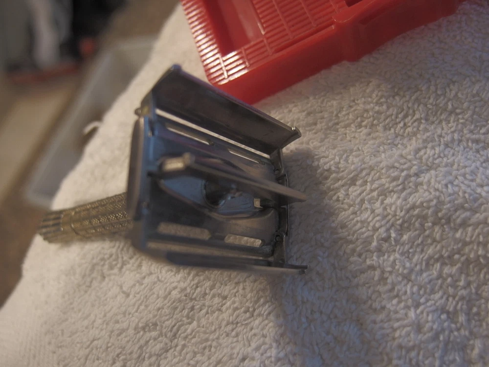 Razor is in very good shape,minor oxidation. Blades shown included. Case has scratching and wear. See pics for condition.See photos for condition.Photos are considered part of the condition and description.If you are buying multiple items,save them in your cart and make one payment and they will ship together and ask for reduced shipping on multiple items that can ship together. USPS sets shipping prices and we always send cheapest unless requested otherwise. Shipping prices are non negotiable. We DO NOT ship to any other address besides your approved shipping address on ebay and our labels are printed from the same. We ship to the USA ONLY. All items will be shipped out the next day.(not including weekends and holidays) ASK QUESTIONS,DO NOT ASSUME.IF IT IS NOT IN THE DESCRIPTION AND PHOTO ,IT IS NOT INCLUDED. If an item is listed as untested,as is,or for parts or repair it is sold "as is" and assume it does not work. We ship USPS and Fed ex only.Fed-ex does not ship to PO boxes. When you are satisfied with your purchase leave positive feedback and you will automatically receive the same. C22