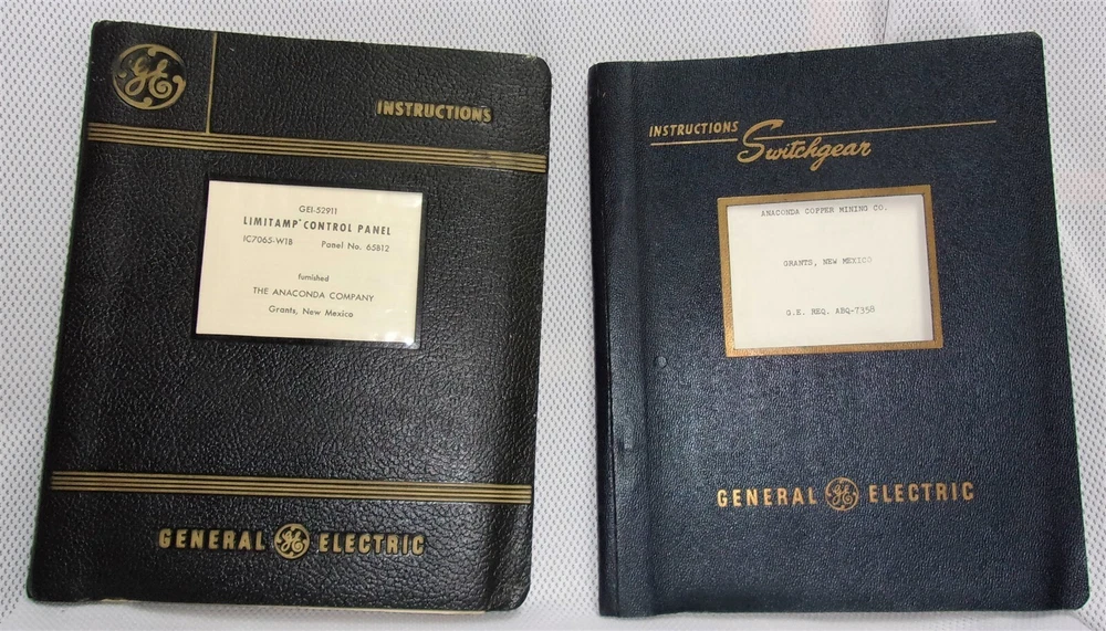 1955 GE Limitamp Control Panel Manual / GE 1950's Air Circuit Breaker Manual 1955 GE Limitamp Control Panel Manual AND GE 1950's Air Circuit Breaker Manual Anaconda Copper Mining Co. Grants, New Mexico Bound in soft leather-like material Limitamp Control Panel Manual IC7065-W16 Panel No. 65B12 General Electric Company June, 1955 Very good condition for its age. Pages clean and tight. The contents of this manual include: Description Installation Operation and Maintenance Device Instructions Panel Drawing List Panel Outline Panel Diagram And some blueprints This manual has tabs numbered 1-9 Approx. 60 pages, 2 envelopes, and a few blueprints. 11.5" x 9.5" Air Circut Breaker Manual Type AK-1-50-1 Manually Operated General Electric Company 1950 Very good condition for its age. Clean and tight pages. The contents of this manual include: Introduction Recieving, Handling, and Storage Installation Operation Maintenance Basic Breaker Components Protective Devices Miscellaneous Renewal Parts Approx. 25 pages 11.5" x 9.5" The pictures that are provided are for your convenience and are of the exact item being sold. Please examine all of the available pictures well before making any purchases. Please ask any questions before purchase. Thanks! Powered by SixBit's eCommerce Solution