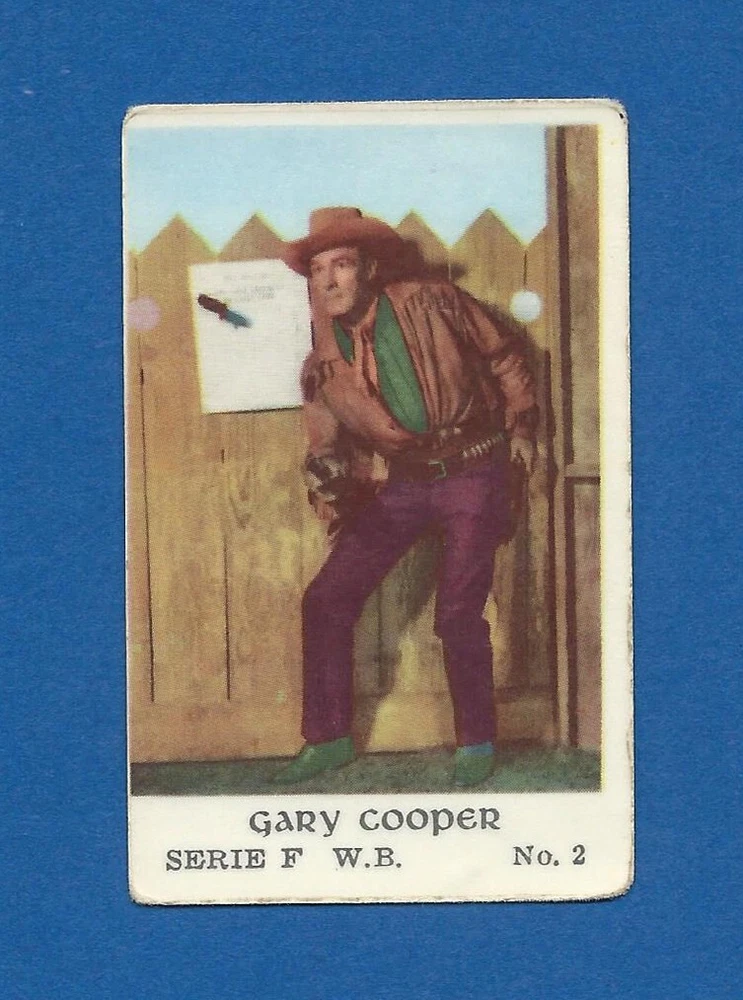 Card Number: 2 Franchise: Film & TV Stars Language: Dutch Set: Serie F Country/Region of Manufacture: Netherlands Features: Base Set Year Manufactured: 1956 Type: Non-Sport Trading Card Card Size: Roughly 4,5 x 7 cm Manufacturer: Svenska Handelskompaniet Original/Licensed Reprint: Original Featured Person/Artist: Gary Cooper