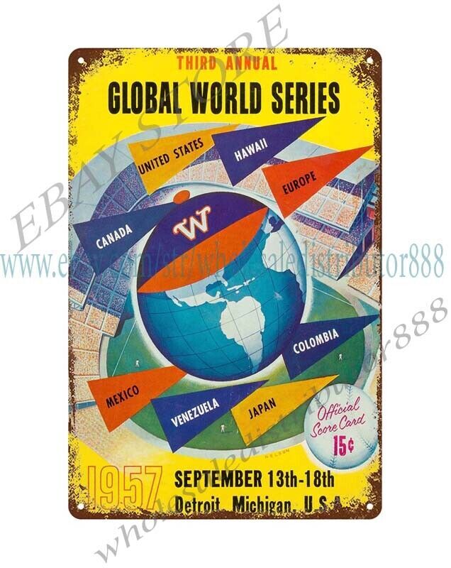 decorative metal wall 1957 baseball Global sports Program metal tin sign 1957 baseball Global sports Program metal tin sign Made of iron sheet / tin metal and this vintage style reproduction metal art is intentionally made to appear rusty, discolored, antique, stained, or scratched. That is representative of the state of the original not the condition of the sign. Four small pre-drilled holes in each corner for easy mounting or hanging on the wall. It is light weight and can be attach to the wall by double-sided tape or sticker tack. Ideal for kitchen, coffee house, diner, pub, liquor shop, cottage farm, outdoor garden back yard, auto shop, indoor lounge, man cave, living room, bar, store, garage, bedroom, restroom, coffee shop, game room, house, office and all kinds of individual character places. Package include 1 x Metal Sign Poster Wall Plaque 100% brand new, high quality Approximate Size: 30 x 20cm / 12" x 8" Condition: 100% brand new. Orders are shipped out from the United States. Fast and reliable. Please kindly note that the actual colors of the product may differ slightly from photos due to different monitor settings and the lighting during photo shooting. Sizes provided are estimated only. Placements of patterns, textures and colors on the items may vary slightly and minor inconsistencies between items may occur. Product Code: bg011-s17131 Listing and template services provided by inkFrog