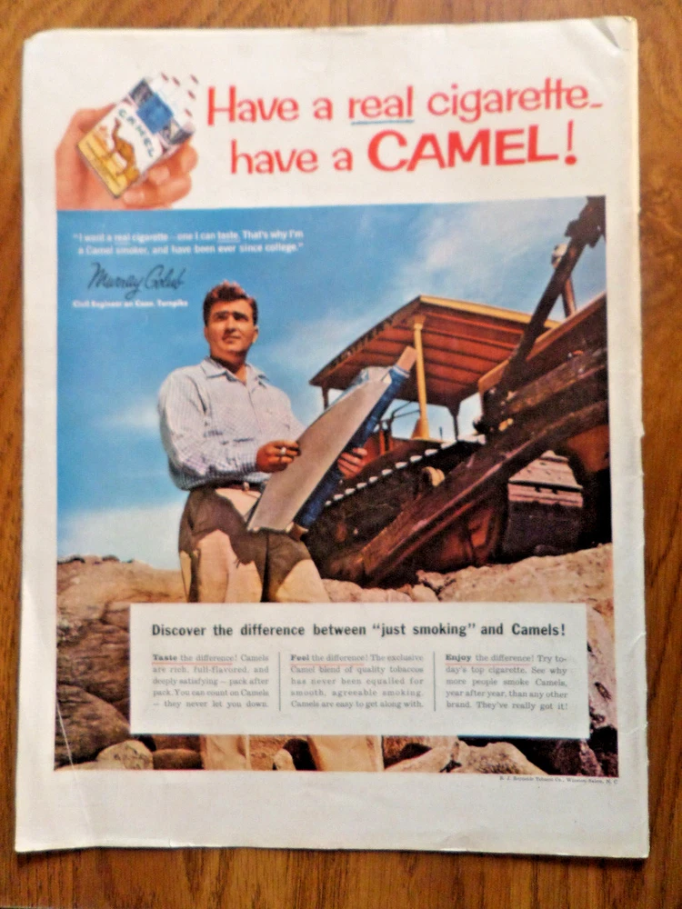 #013117-6137 Original Magazine ad in good condition. Measures 10 1/4 x 13 1/2 Skijoring on snow covered lake at Samaden Switzerland On the other side (back cover of magazine with normal wear) Marray Golub Civil Engineer on Conn. Turnpike. Camel Cigarette Ad 0571907010 FOR COMBINED SHIPPING ON ADS YOU NEED TO USE THE "ADD TO CART" OPTION ON EACH ITEM & PAY AT THE END WITH ONE PAYMENT TRANSACTION. The eBay system will Auto-Combine & only charge one combine Shipping charge.