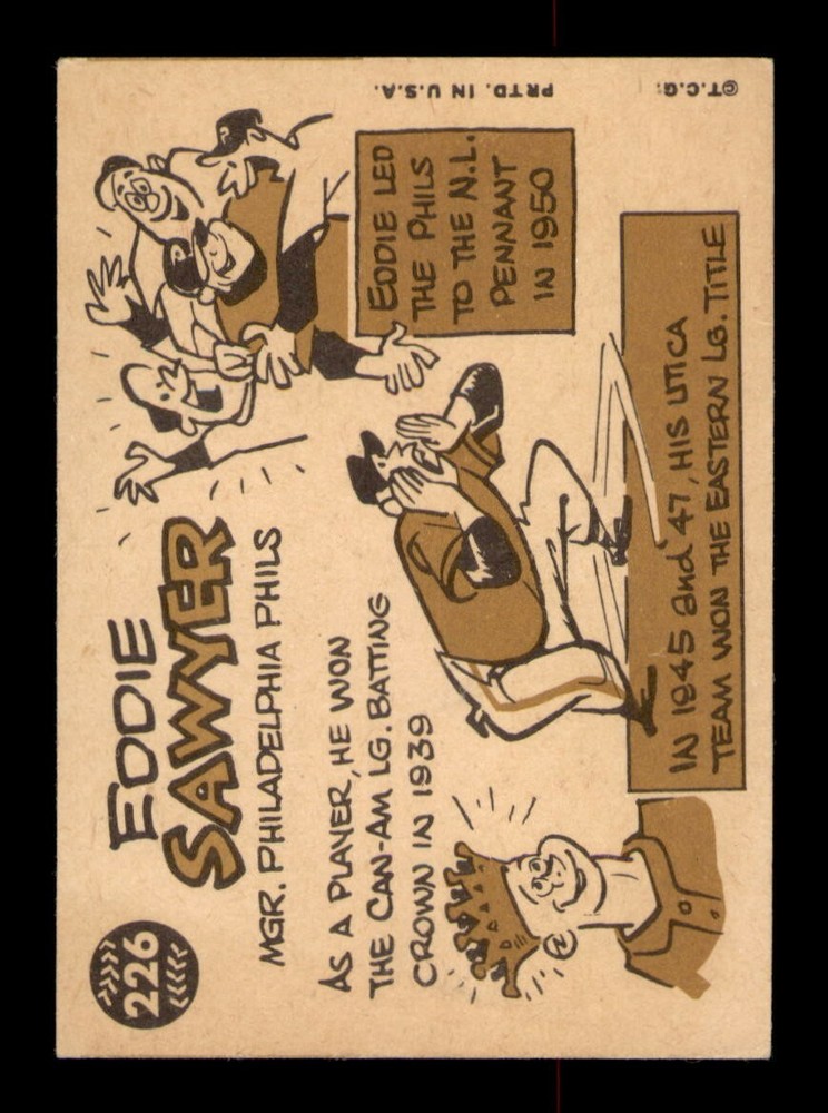 All cards are original. These high quality scans are the exact card you will receive. ADD TO CART: If purchasing more than one card, please add all your cards to the cart, then pay for the entire cart with one payment, this makes it much easier and you will receive all your cards with one delivery. Please feel free to take a day or up to a week and add cards to your cart. SHIPPING: We currently offer FREE shipping on this item. We ship within one business day first class mail. RETURN POLICY: Bid with confidence, 30-days money back, no questions asked at no cost to the buyer. GRADING STANDARDS: We try to closely mirror PSA, BGS and SGC's grading standards to the best of our ability. We have graded 50,000+ cards ourselves and have had 1,000's of cards graded from the 3 major grading companies. GRADES: MINT is a superb condition card that exhibits only one of the following minor flaws: a very slight wax stain on the reverse, a minor printing imperfection or slightly off-white borders. NM-MINT+ (Near Mint-Mint Plus): shows higher qualities of a NM-MINT card, but not quite the caliber of a MINT card, a minor printing imperfection is allowed, slightly off-white borders, minor stain on the reverse, very little corner fraying if any. NM-MINT (Near Mint-Mint): is a super high-end card that appears MINT at first glance, but upon closer inspection can exhibit one or more of the following: a very slight wax stain on the reverse, slightest fraying at one or two corners, a minor printing imperfection and/or slightly off-white borders. NM (Near Mint): is a card showing slight surface wear visible only upon close inspection. There may be slight fraying on some corners. Picture focus may be slightly out-of-register and a minor printing blemish is acceptable. Slight wax staining is acceptable on the back of the card only. Most of the original gloss is retained. EX-MINT (Excellent-Mint): this card may have visible surface wear or printing defects which does not detract from its overall appeal. A very slight scratch or indent may be detected only upon close inspection. Corners may have slight fraying and picture focus may be slightly out-of-register. Minor chipping on edges allowed. Card may show some loss of its original gloss, may have minor wax stain on reverse, may exhibit very slight notching on edges and may also show some off-whiteness on borders. EX (Excellent): minor rounding of the corners is becoming evident. Surface wear or printing defects are more visible. There may be minor chipping on edges. Loss of original gloss will also be more apparent. Focus of picture may be slightly out of register. Several light scratches or wrinkles may be visible upon close inspection but don't detract from the appeal of the card. Card may show some off-whiteness of borders or a light mark on the back. VG-EX (Very Good-Excellent): card’s corners may be slightly rounded and surface wear is noticeable. The card may show light scuffing, mark/marks or scratches with some original gloss still intact. Borders may be slightly off-white and creasing or wrinkles visible. VG (Very Good): the card reveals some rounding of the corners. Some surface wear is evident as well as light scuffing and/or scratches. The focus on the card may be somewhat off-register and much of the card’s original gloss may be lost. Other elements that may lead to a grade of VG include a mark/marks, a stain and creasing or wrinkles are common. GD (Good): card's corners will show accelerated rounding and surface wear is obvious. There might also be a crease or several creases or a mark/marks on the card as well as scratching, scuffing, light staining, wrinkles or even chipping. As for the card's original gloss, it might be completely gone. LOW GRADE this card will have more advanced defects to such a serious stage that the card's eye appeal has completely vanished. A card with this designation may also be missing one or two small pieces from corners and may exhibit major creasing. In addition the card may have extreme discoloration, mark/marks, wrinkles, staining, paper loss etc... A LOW GRADE card can include GOOD, FAIR or POOR grades. GRADING NOTES: Please note if a card looks too nice for the grade, there is probably a reason why. We can't possibly explain every flaw in the title/description on 50,000+ cards, but they are graded accurately. It isn't realistic to expect a card that looks NM in the scan to be NM if we grade VG or VG-EX not to have a crease, wrinkle or another flaw. We grade the technical grade to include centering and other issues. We provide 2 high quality scans of the front and back of the card and those scans are part of the description. If for any reason you are unhappy with your card we offer free returns no questions asked. Thank you for your interest and you will not be disappointed with our service! . Powered by SixBit's eCommerce Solution
