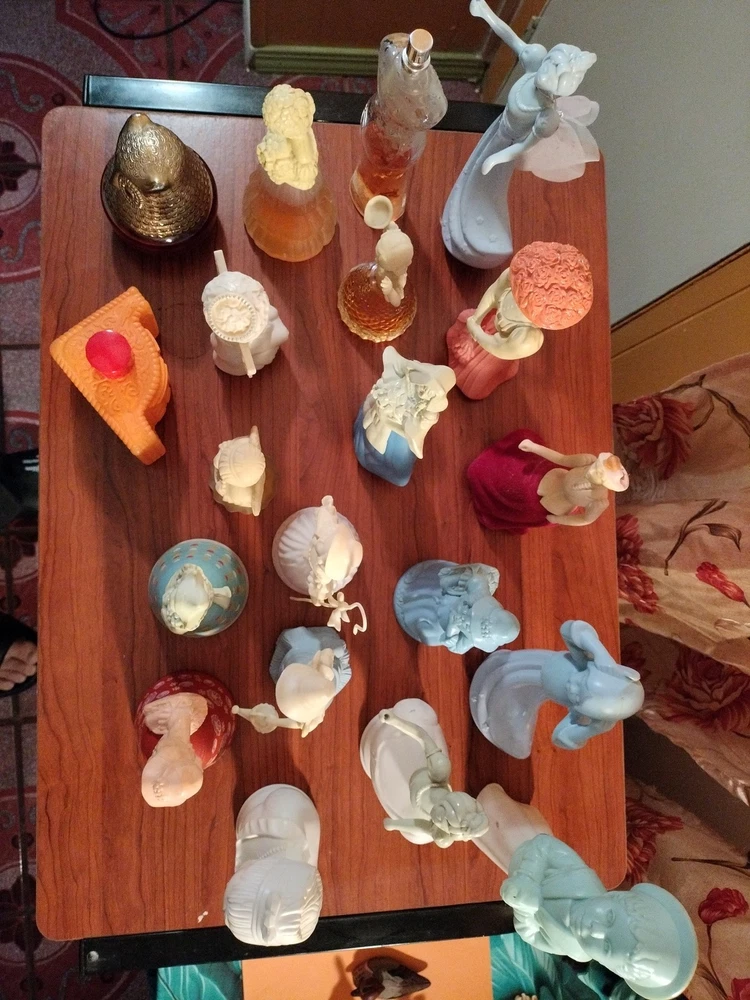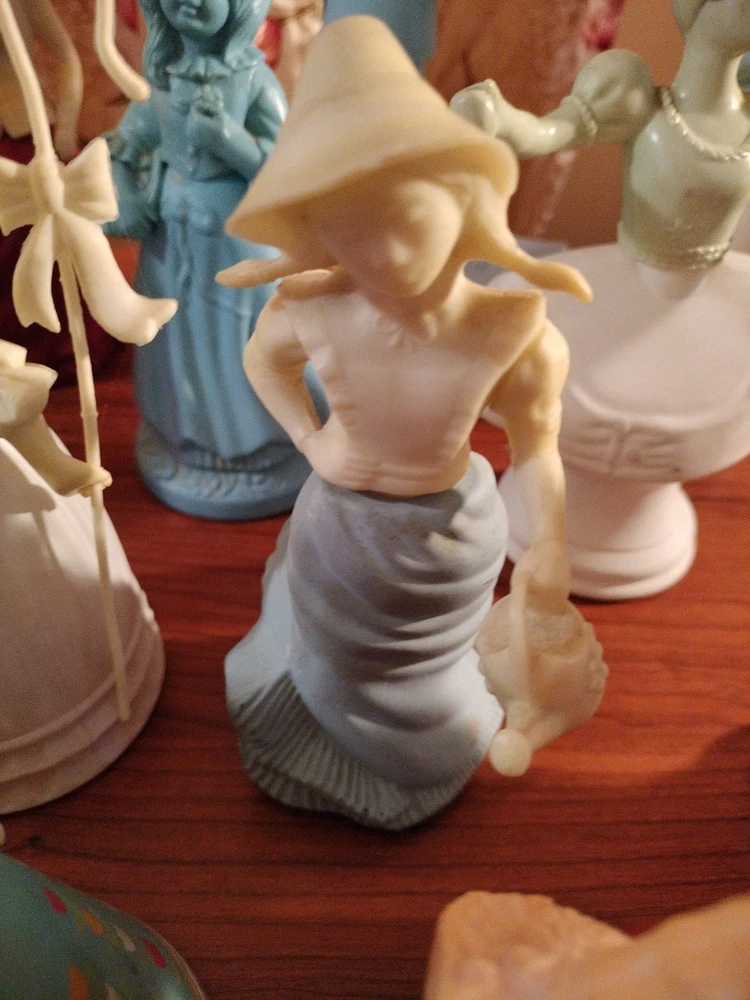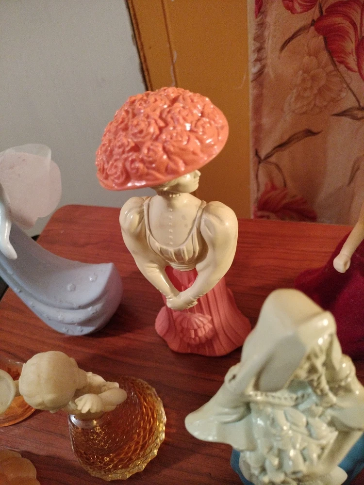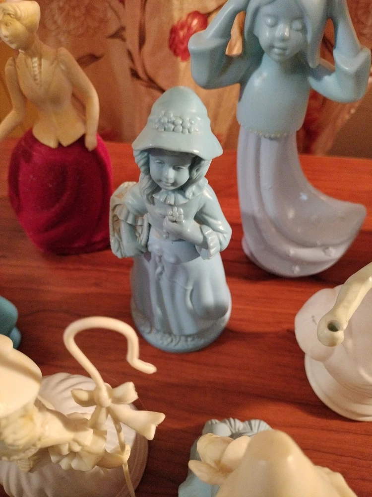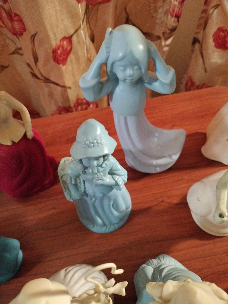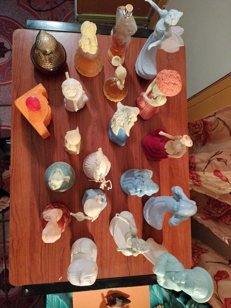 Belles of the worlds, 18th century classic figurines young girl (belles of the world), Dutch Maid(moonwind), Angel songs w/ llyre, Mary Mary (topaz), little girl blue(topaz), Garden girl (sweet honesty), Heavenly Angel (sweet honesty), Gay Nineties Fashion figurines (somewhere), Victorian Lady (sweet honesty), Owl Fancy gelee decanter(raining Violet, roses, roses, Fly- A - Balloon(birds of paradise) .This is a whole sales deal not by pieces.. buy all collectibles vintages 1960's to 1980's Avon filled and Empty bottle scent mostly bottle are filled with their original scent, some are full , half, for $250 twenty one (21) bottles...