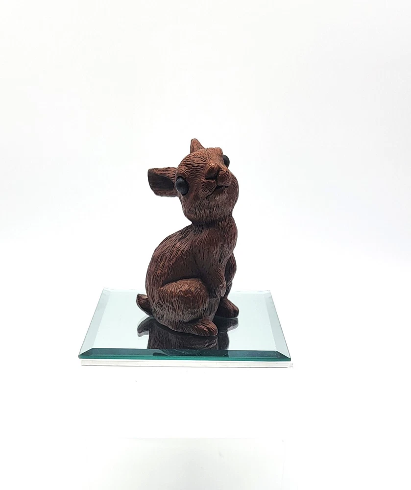 BRAND: Red Mill Manufacturing, USA, 1960s. MATERIAL: Crushed Pecan Shells and Resin. STYLE: Sweet Detailed sitting Bunny, Easter SIZE: Approximately 4" Tall and 3" Wide. COLORWAY: Chocolate Brown CONDITION: This sweet little bunny was made in the 1980s by Red Mill Manufacturing, USA. They specialized in making figurines from crushed Pecan Shells and gained quite a following. This bunny would be adorable in any collection or to decorate for Spring/Easter. He is in very good condition and I have found no serious issues considering his age. Sure to bring a smile to anyone's face, such a cutie!! Thank you for shopping with me today and hope your have a wonderful day!!