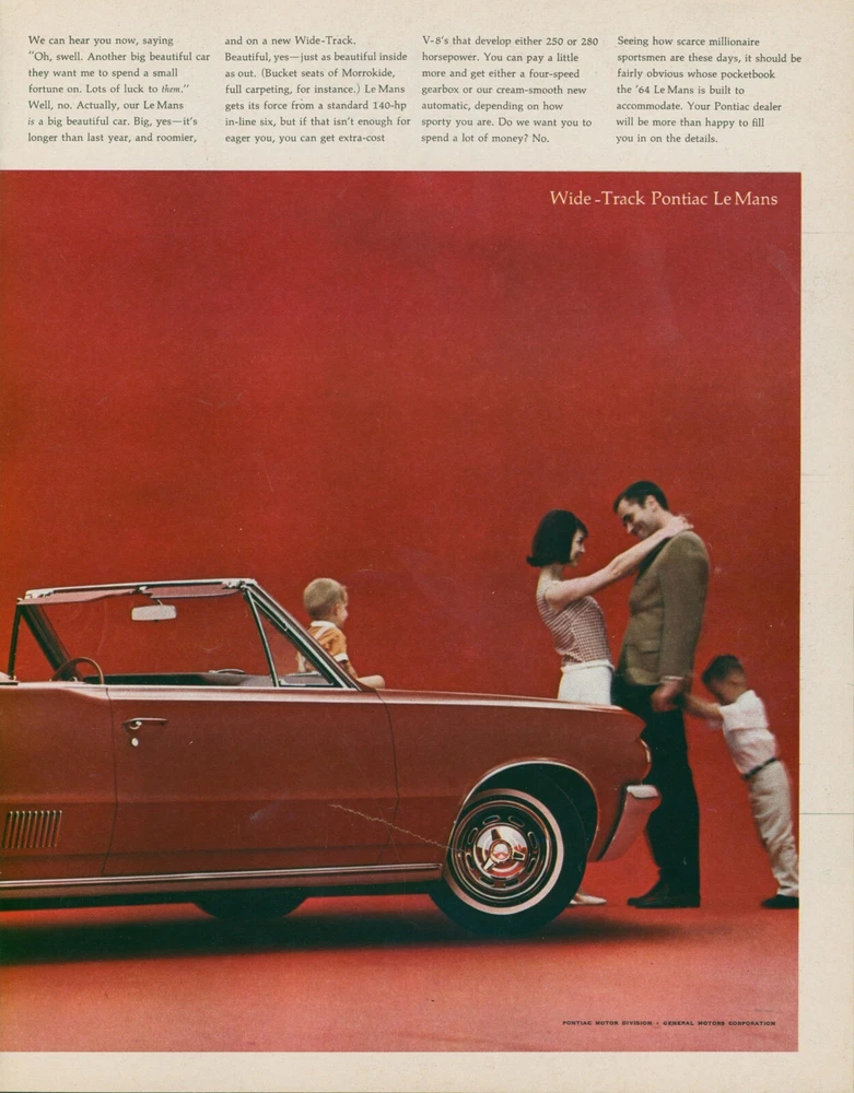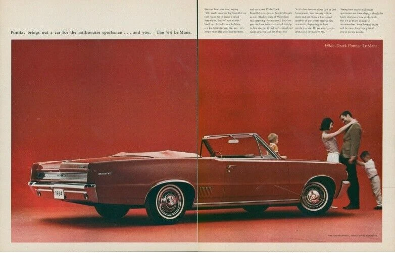 Ad from Look magazine- December 3, 1963. This ad is 2 full pages. The first image shows the 2 pages digitally placed side by side, and the other images show the individual pages. There are some light pressure creases in the red areas, and there is a spot with a flaw in the red ink about 2 inches above the edge of the back bumper and a diagonal mark through the bottom part of the passenger door into the front tire as seen in the scan. A full page is about 10 inches by 13 inches. Please see scan for image of page. All ads have been carefully removed and are original- no copies or reprints of any type. All ads are shipped in protective resealable bag which is placed in a cardboard no bend mailer. All ads are shipped USPS First Class- combined shipping available on ads. These advertisements are perfect for framing.