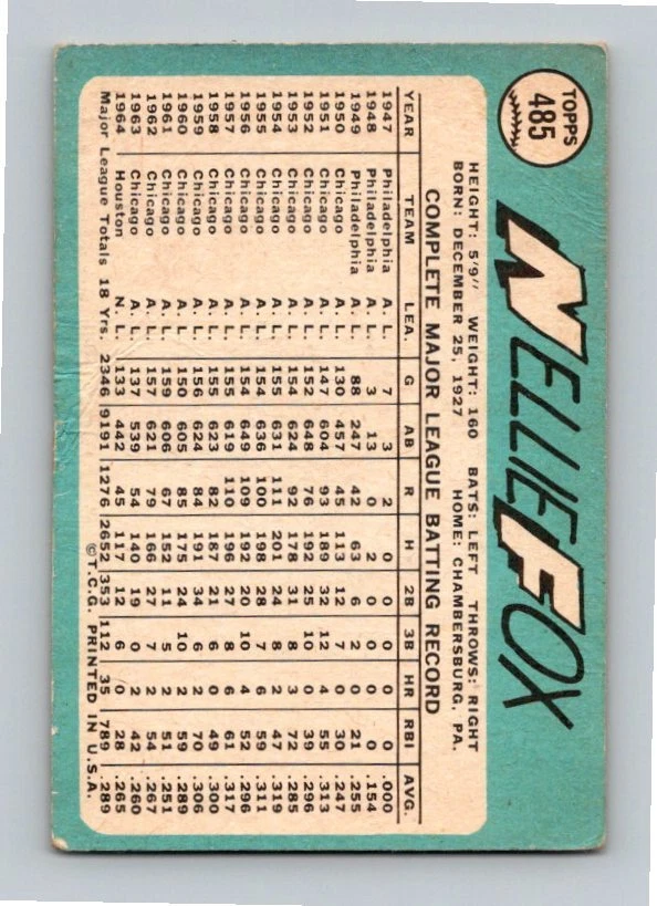 You are purchasing a 1965 Topps Nellie Fox #143. You will receive the exact item in the photographs. Thank you for looking. Listed With Mascot .