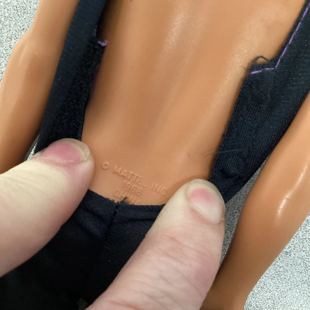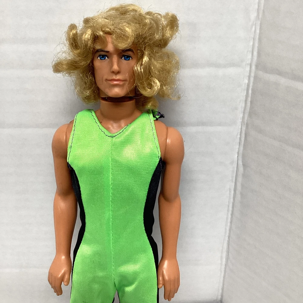This is a rare vintage Barbie Ken doll from 1968, featuring a green suit and curly blonde hair. The doll has a light complexion and blue eyes, and is a 12 inch fashion doll with a boy doll gender. It is a Barbie Collector product line and comes with the doll only, as seen in the pictures. This antique doll is perfect for collectors and doll enthusiasts alike, and is sure to be a valuable addition to any collection.