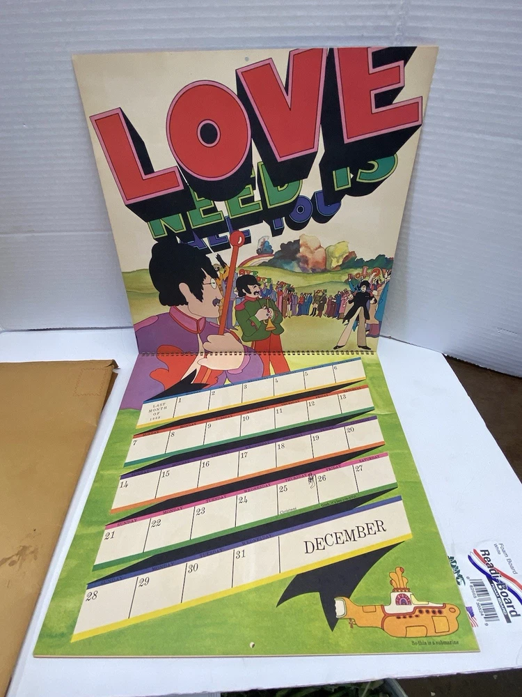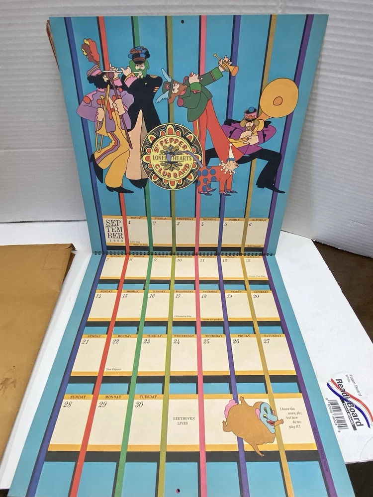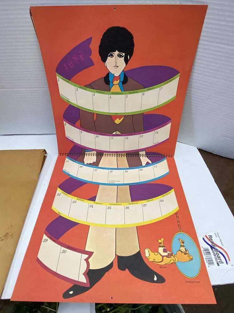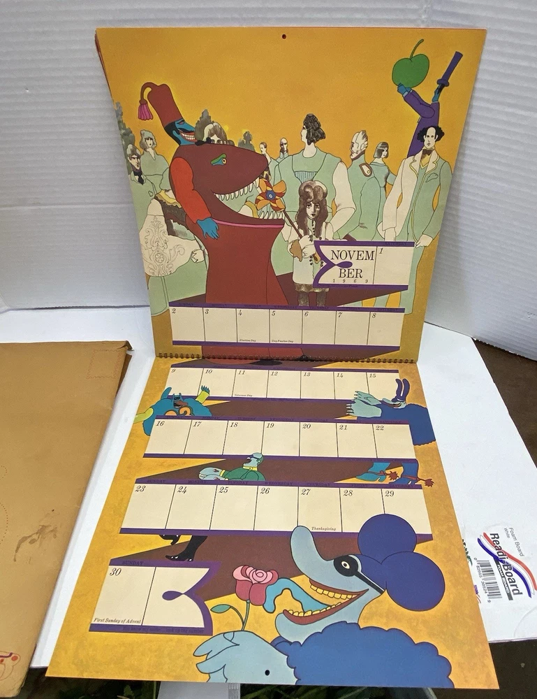This is a rare 1969 the Beatles yellow submarine calendar . Comes in original mailer envelope. from the western press, New York, New York. When folded pages are about 13 1/2 x 13 1/2. Calendar is in near mint condition. No marks sharp corners. The envelope is in good condition but does have a few marks on it. See photos.