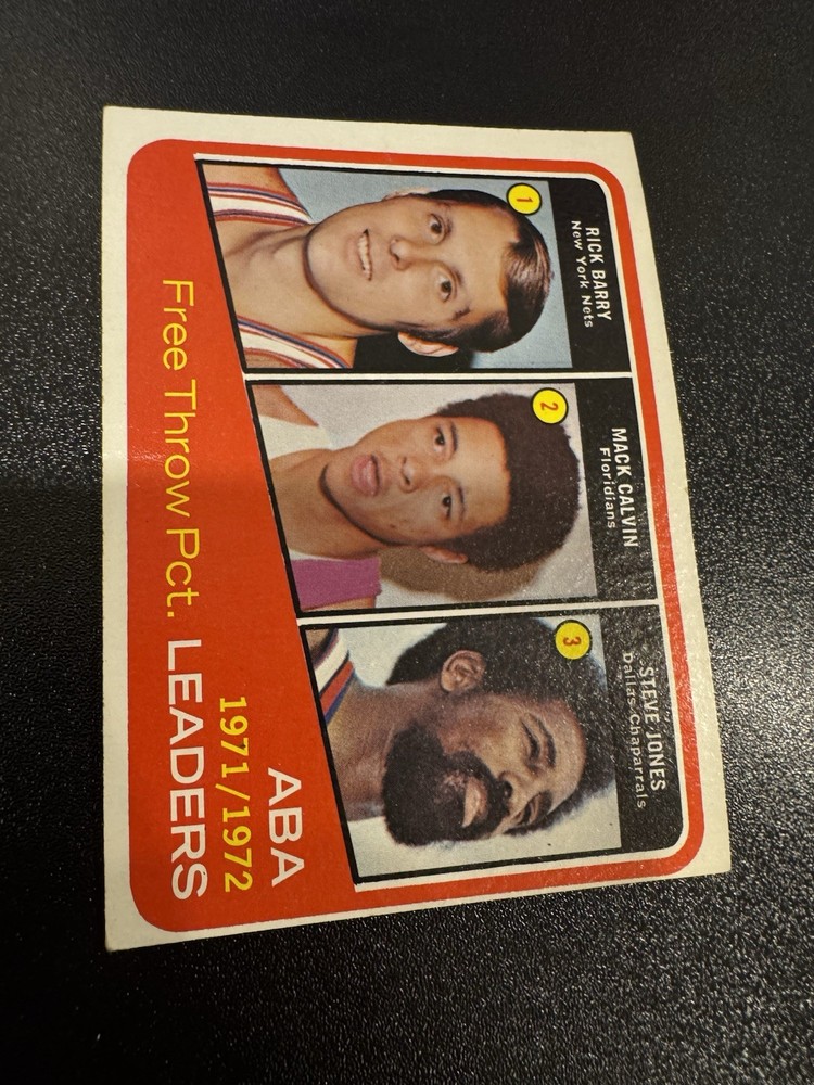 The product is a 1972-73 Topps trading card featuring Rick Barry from the ABA Free Throw Pct. Leaders. This vintage basketball card is from the NBA era and is not autographed or a rookie card. Manufactured by Topps, it is a valuable collectible item for fans of basketball trading cards from the 1970s.
