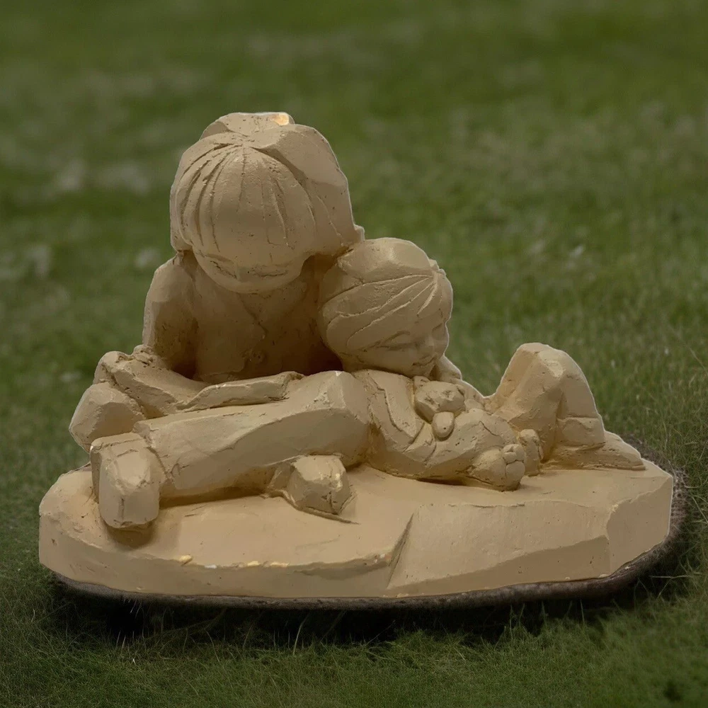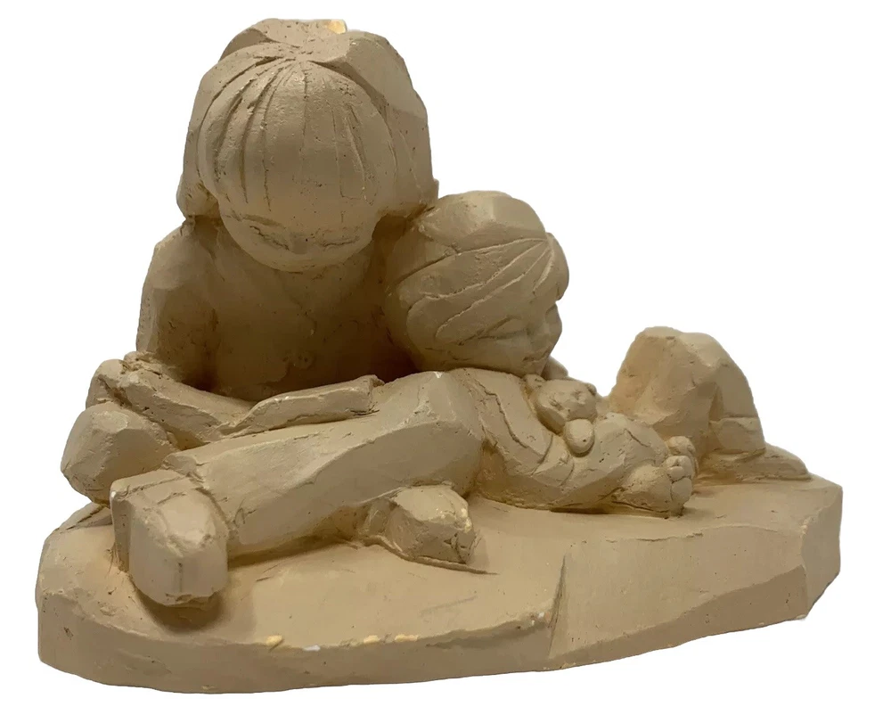 Please note: As pictured, there's chip in the top of girls head. For questions or issues please message me. I’ll respond the same or next business day. Our goal is to provide all the information you need before purchasing & the best service possible. We'll ship within 1 business day upon receipt of payment. If there is a problem, please message me prior to leaving feedback. I’d appreciate the opportunity to correct any problem & earn your positive feedback. Thank you very much. This beautiful sculpture by 1974 Abbey Press depicts a young girl reading to a little boy. Crafted from clay, this medium-sized piece is perfect for any room and occasion. The beige color and matte finish add to its timeless appeal. Handmade in the United States in 1974, this original sculpture is a true gem for collectors. The intricate details and lifelike portrayal of the subjects make it a great addition to any decorative collection. Whether you're looking to add a touch of 1970s style to your home or searching for a unique gift, this sculpture is sure to impress.