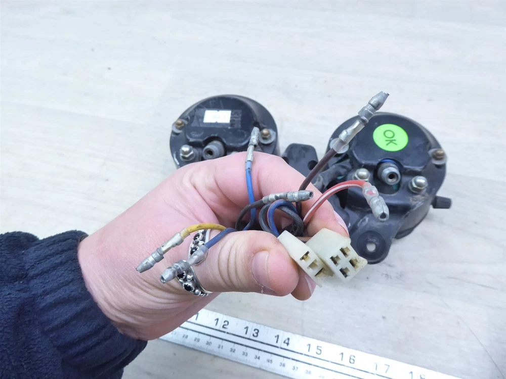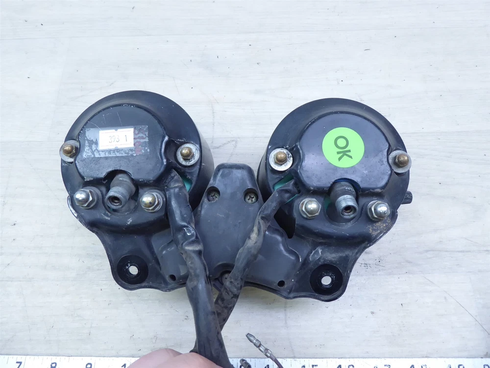 FOR SALE: gauge cluster ORIGIN: 1976 Yamaha XS650 with 15,367 miles. May fit other years and models, contact your local dealer to confirm fitment. CONDITION/DESCRIPTION: the gauges were tested and the speedo gauge is in working condition but the tach gauge moves slow making the assembly for parts or repair, the reset knob spins well and moves the odometer, we are unable to test the light panel so the working condition is unknown, the dial faces have some light fading but are still clean and readable, the glass has no cracks or holes, the cable fitting threads are not stripped but may have some light stress from use, the mounts look good, the wire ends and connectors are in good shape, the panel appears to have no bends or warping, the backs have no dents but some small dings may be present, the assembly has some scratches light rust and wear from use, please see the pictures for additional details. MRC INVENTORY NUMBER: Y393-1 OUR PROMISE 1. Our parts are QUALITY USED PARTS and we are a LICENSED motorcycle salvage dealer by the state of Wisconsin. 2. Any major flaws in any parts are DISCLOSED to YOU, to the best of our ability. 3. We try our best to give YOU a smooth and easy transaction. 4. We ship PROMPTLY - so YOU don't have to wait - normal delivery occurs 1 to 7 business days to anywhere the continental US. SHIPPING • Shipment will be processed 1 business day after payment is received. • International- please contact us for a quote • We will combine shipping • Please ensure your address is correct in PayPal before purchasing your item RETURNS If not satisfied, we will accept a return and offer a 100% refund FEEDBACK Please contact us to resolve a problem before leaving negative feedback. All issues can be worked out. SEARCH STORE Parts being sold are taken from used motorcycles that were not totaled or subjected to water damage. Please check our store for any other items you may want, all of our items for sale are listed on eBay. eBay STORE CONTACT Powered by SixBit's eCommerce Solution