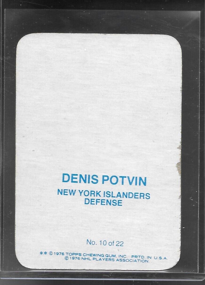 1976-77 Topps - Glossy Inserts #10 Denis Potvin Centering is good, color, and gloss, corners are excellent. Edges on back of card show some light wear or chipping in isolated areas. I do my best to evaluate each card carefully but please examine high resolution photo as price of card is determined by that pic. All cards are shipped in a brand new Ultra-Pro Premium top loader with an Ultra-Pro premium plastic sleeve to protect your card for years. Please read our reviews. Customers are pleased with their card purchases from NMMT Vintage. We are different! Tired of getting horrible packaging of your cards by lazy dealers? Customers rave about our care in shipping and handling your treasure regardless of its value. eBay Standard envelope shipping will have a cardboard support as well as the Ultra-Pro Premium top loader. First class shipping will have two cardboard backers as well as the Ultra-Pro Premium top loader and will be mailed in a bubble envelope.