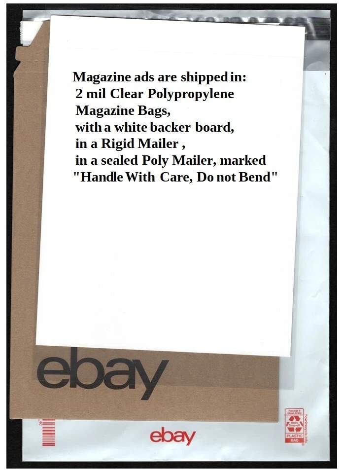 1977 Kodak Moviedeck Projector Built In Screen Bright Super 8 mm Auto Print Ad Original Advertisement Page Placement: Interior A single page, with both sides scanned and described. Suitable for Framing M any older magazine text/images were printed mis align ed with the edges. Even within the page, text and images can be misaligned with each other. Trimming all four edges doesn’t always fix the issue, and leaves less room to mat. As of 3/20/2024 I trim only the single edge that was attached to the spine, at 90 º to the top edge , and will leave the other edges untouched. Except for the single trimmed edge, you’re seeing the full page exactly as it was printed. As a result, sometimes the text and in-page images may look tilted but this will leave the most space for matting later. You can see the entire page, edges and all, resting on a black border to help you judge overall condition. No virtual cropping to make it look perfect, no hidden surprises when it arrives. Ad Description/Company Name : Side 1 : Kodak Moviedeck Projectors Silent and Sound reasons to give a Kodak Moviedeck projector Side 2 : De Beers Consolidated Mines Ltd. She usually laughs at my anniversary gifts, but this year, I think she’s going to cry. A diamond is forever. Publication Date: 19 77 November Publication Name: National Geographic Magazine Size: Approx 10” x 6 ¾ ” I originally trimmed this magazine nearly a year ago, before understanding how common it is for magazines to print at off-angles to page edges. Trimming all 4 edges doesn’t fix it , and winds up slicing too much border off. Be aware, some pages of this issue (November 77) may be overtrimmed . Please bear in mind when viewing images. Condition : Used. These are original pages from original magazines. They are very old, and usually stored in less-than-perfect environments. F oxing, fading, discoloration are common and present to some degree . Also corner folds, edge damage, creases, ripples, scuffs , smudges and other imperfections are normal . Pages may show pressure marks from production or years of storage . Images are scanned on black background, NOT matted or framed. Many older mag azines print ed misaligned with the ir edges . I only trim the spine edge , leaving the other three sides untouched. When you mat the page, you can align as desired. The images are the EXACT SAME PAGE BEING SOLD AS IS . PLEASE EXAMINE CLOSELY AND MAKE YOUR OWN JUDGMENT. NOTES : See note above – some pages of Nov 77 issue may be overtrimmed and lack border space. If there’s anything NOT Included in the typical conditions listed above, and that cannot be seen in the images, I’ll add it here . Your satisfaction guaranteed. If you have any questions or qualms, feel free to ask! Ideal for: Collectors Historians Gifts Themed decoration for home or business Museums Magazine ads are shipped in: 2-mil Clear Polypropylene Magazine Bags with a white backer board, in a Rigid Mailer, in a sealed Poly Mailer, marked "Handle With Care, Do not Bend" and shipped USPS. We DO combine shipping for multiple purchases!