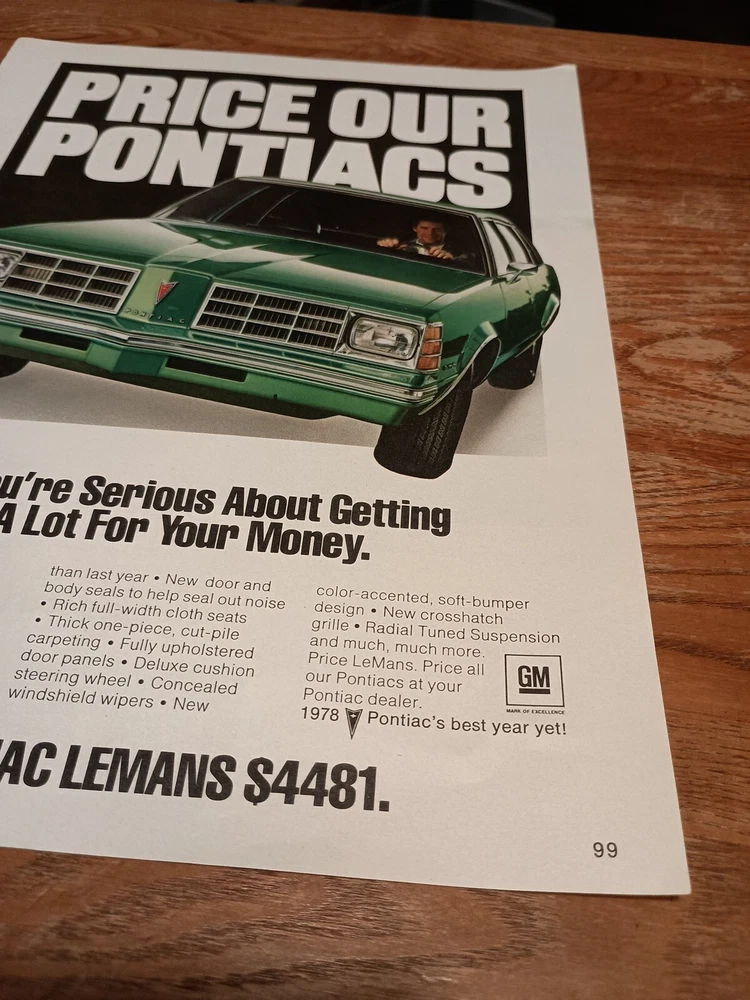 1978 Pontiac Lemans Magazine Ad. Condition is Used. Shipped with USPS Ground Advantage.