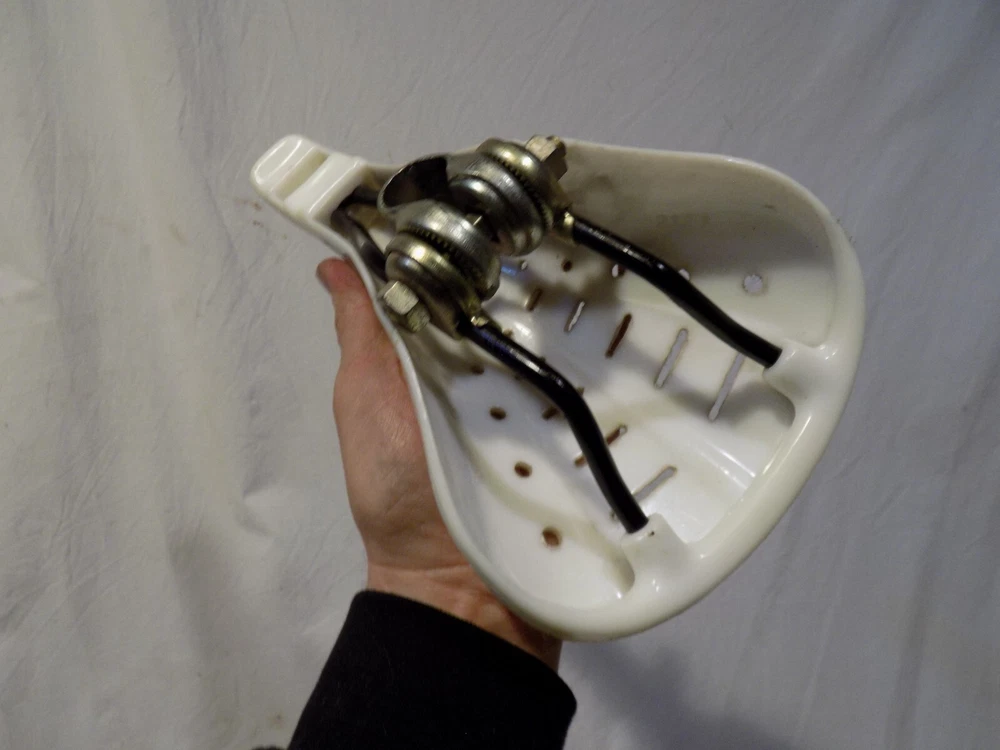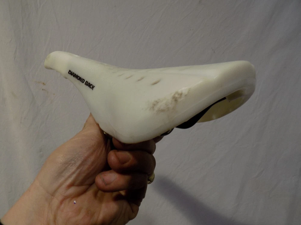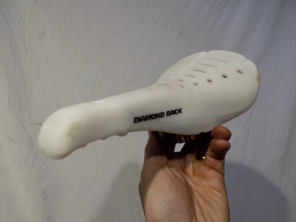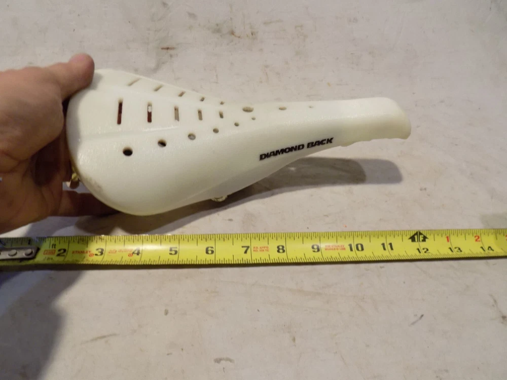 1980s DIAMONDBACK 2123 BMX BIKE SEAT WHITE GT PERFORMER HUTCH DETOUR OLD SCHOOL Click Photos to Enlarge Description Here is a way cool 1980s vintage DIAMOND BACK 2123 BMX bike seat. Measures approx 9 3/4" from tip to tip. I think it is in respectable condition for its age! (see pics and be your own judge) Comes exactly as shown. Not all scratched up or broken like most you see of this era. (has some corner scratches) Install on your Diamondback, Detour, Viper, Redline, Proline, 24" cruiser, Hutch, Haro, GT, Cook Bros, etc etc etc. A cool item for your favorite BMX or use it for display. IF you EVER think you could use this DO NOT MISS OUT! This stuff is tough to find and will only go UP in value! Sold as shown. Be sure to check out all pics and be your own expert/judge of condition. I took MANY pics and have nothing to hide! Please email with any questions regarding condition before you bid. OLD SCHOOL BMX IS HOT! Details like this make a good bike into a GREAT bike! This stuff is impossible to find! DONT miss this! THIS WEEK I AM LISTING NUMEROUS COOL VINTAGE ITEMS! They are all available right now! Check them out! Combine items to save yourself $$$ on shipping! alba black I try my very best to describe as accurately as possible. Be sure to check out all pics and email with any questions you may have before you bid. If you are anywhere outside the lower 48 States including Alaska, Hawaii, or Puerto Rico contact me before you bid as shipping will cost more. I have lots of other rare car parts and unique items on auction this week! Email with any questions you may have. THANK YOU for your bid! Payment and Shipping PAYMENT TERMS: Paypal is Ebay's accepted form of payment. Items are shipped every Tuesday and every Friday. Payments received by Monday generally ship on Tuesday. Payments received after generally ship on Friday. SHIPPING TERMS: I will gladly ship worldwide as well as to Alaska and Hawaii for USPS Priority Mail cost. (Please email for exact cost BEFORE you bid) WISCONSIN RESIDENTS add 5.5% for sales tax. inkfrog terapeak