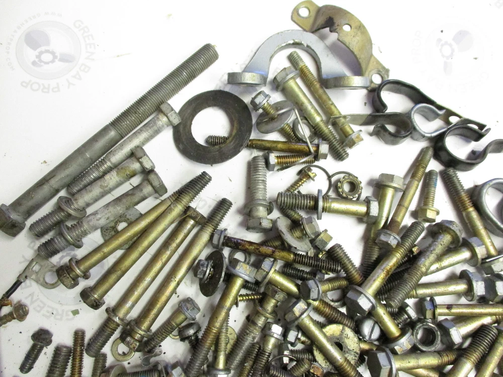1983 Evinrude Hardware Nuts Bolts Screws Washers 70HP 3Cyl E70ELCTE SKU: GB512762303 Brand: OMC Condition: Used Notes: Used, no corrosion Tote: T111B Year: 1983 MPN: GB512762303 warehouse: T237C Horse Power: 70 This sale is for a used assorted of hardware from a 1983 Evinrude 70HP 3Cyl outboard motor. Model #E70ELCTE You will get all of the used OMC hardware in great condition. This OMC engine hardware is not damaged or corroded. There may be some freshwater rust. Though this came from a 1983 Evinrude outboard, this hardware likely fits many other models. Get everything seen in the picture!!!!