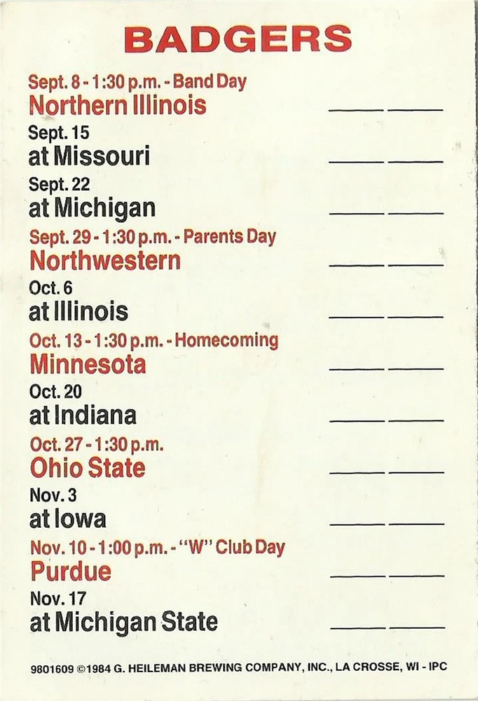 1984 Green Bay Packers, Badgers Football Pocket Schedule- Old Style Beer - See picture for condition. I’m a collector just trying to clear out space. All Items are used unless stated otherwise. I try and list any major flaws I see. Please check out my other lots. Shipping discounts on multiple auctions won!! Please email at close of auction for combined shipping. Ebay will not automaticly combine postage. We only ship to the US. Please pay or contact us within 7 days of closing or we have to report it as a nonpay to ebay. Check out my other auctions on Ebay. Thanks for looking!! Our items do NOT come from a smoke-free environment. Please be aware of this before you place a bid. We get our items from many different sources and they have probably been exposed to smoke - cigarette, cigar, pipe or other - or pets, so if these issues are likely to bother you, please reconsider bidding. I make every effort to accurately and honestly describe each item. Most items are vintage/pre-owned and are sold as such. The flaws I see are listed. Our items are sent to you clean but odors may still linger. My goal is that you, as a buyer, are happy with your purchase
