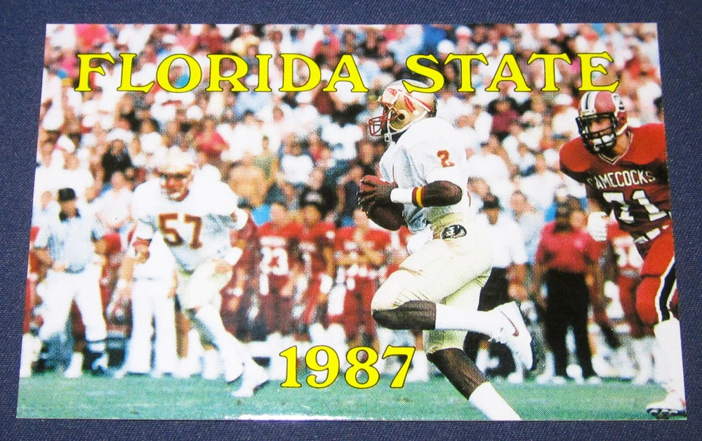 This is a Very Rare 1987 Deion Sanders Florida State Seminoles College Football Pocket Schedule Rookie Card!!! This Amazing Rookie is 2 years prior to his NFL RCs!!! Don't see many of these out there anymore! This is a Used College Football Pocket Schedule and I believe it is NM or Better, and could be Mint! But I am no card grader so please check the pics! What a Rare piece of History to add to your collection! Do not wait - this Rare Beauty will be gone! Buyer to add $8.00 Insured Shipping! As always I combine Shipping (win all the cards the cards you want and pay no more than $8.00 just wait and I'll send a combined invoice)! I accept Paypal only. Buyer to have paid within 3 days of auction end!!! Thanks for looking and GOD Bless! *When purchasing slides and negatives from me the copyright does not transfer. We are selling the items only as collectibles and no copyright is implied.*