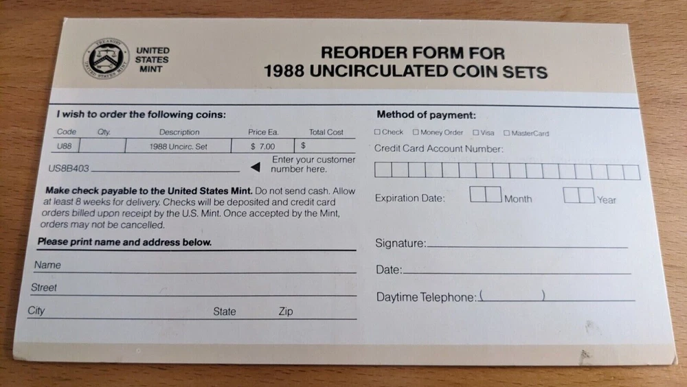1988 United States Mint Set w/ OGP & COA Blue and Red