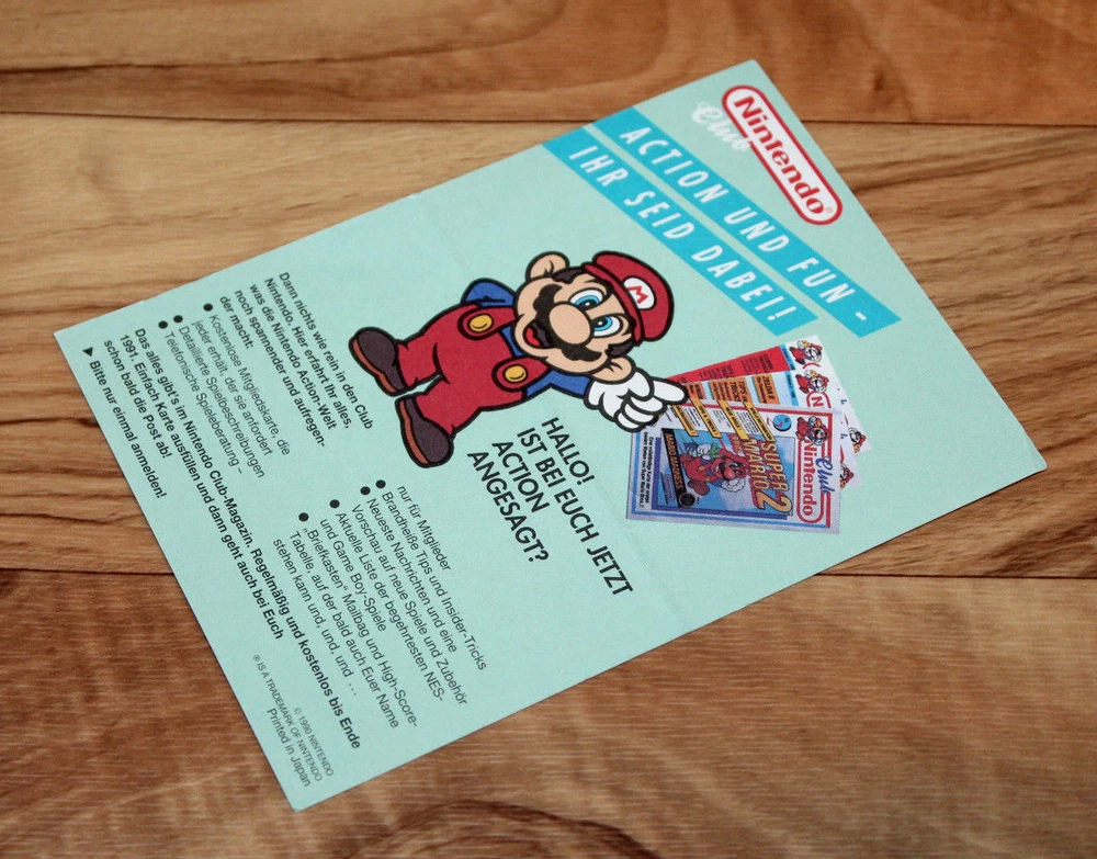 1990 Club Nintendo Promo Ad Card Membership Postcard Super Mario Bros. 2 Vintage it's a postcard which you could fill back in the day and sent it to Nintendo to become a Club Nintendo member it has a fold in the middle, but these so given so once folded --------