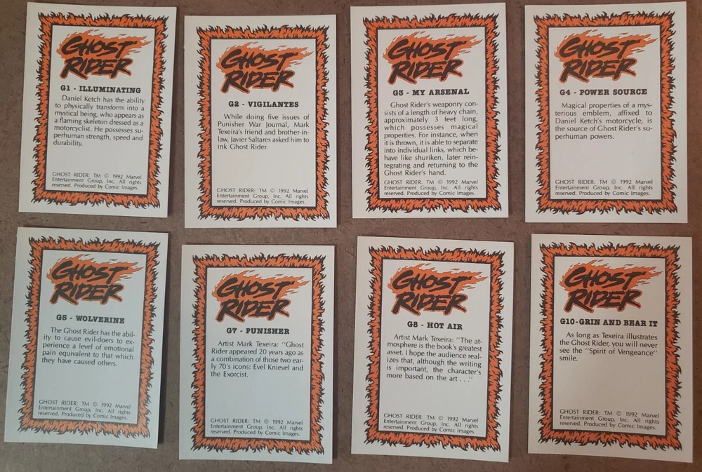This is a 2007 Jacen Burrows Signed plague of the Living Dead Special 1 Gore variant Cover Avatar Press Comic. Comic is in VF condition . Please see photo's for condition. I have other items in my E-Bay store if you are interested. This is a 1992 Marvel Ghost Rider Glow in the Dark Partial Card Set 8/10 Comic Images, missing #"s G6 & G9 . Cards are mostly in EX condition. Please see photos for condition. I have other items in my E-Bay store if you are interested. Please see above for shipping and handling. E-mail me with any questions. Thank You!!