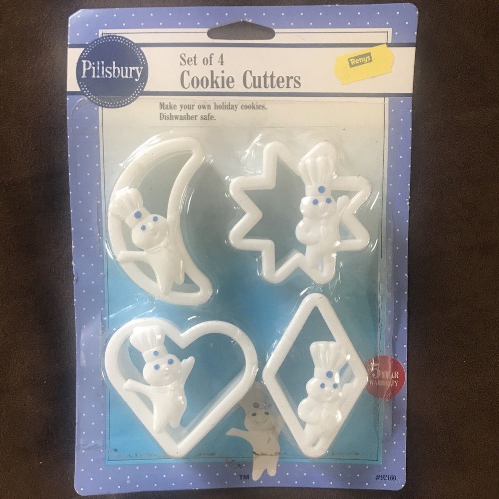 1992 Pillsbury Doughboy Cookie Cutter Set of 4 Sealed Star, moon, heart, diamond The sealing is coming loose and has a little dirt in the seal (see pic) 2 Halloween cookie cutters Jack O lantern, cat