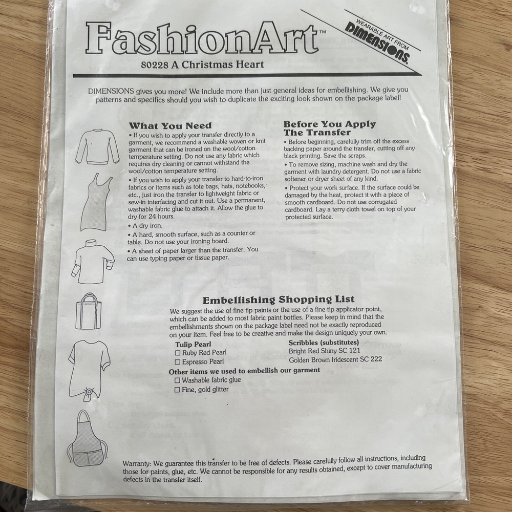 A Christmas Heart Iron-on From Abbey Press 1994 Dimensions Fashion Art. New in package see pictures please